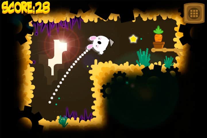 DASH – веселая игра на андроид, где вы будете помогать зайцу преодолевать как можно больший путь. В этой игре основанной на законах физики вашей задачей будет стрелять зайцем так чтобы он при полете собрал все морковки. Выстраивайте правильную траекторию полета и управляйте прыжками зайца с помощью одного прикосновения руки. Учитывайте то что ваш заяц будет отскакивать от различных поверхностей и поворачивайте это в свою сторону. Соберите все звезды на уровне и заполучите самую большую морковку. Путешествуйте по 30 различным уровням, которые расположены в трех неповторимых локациях. Играйте в эту игру и получайте максимум удовольствия от хорошей графики и простого управления.