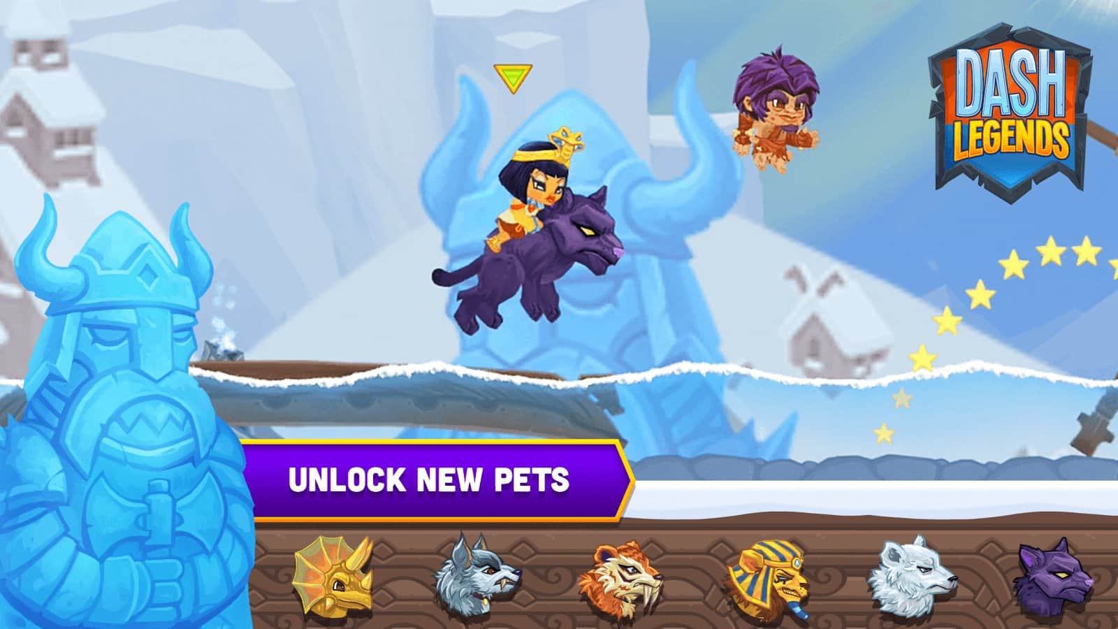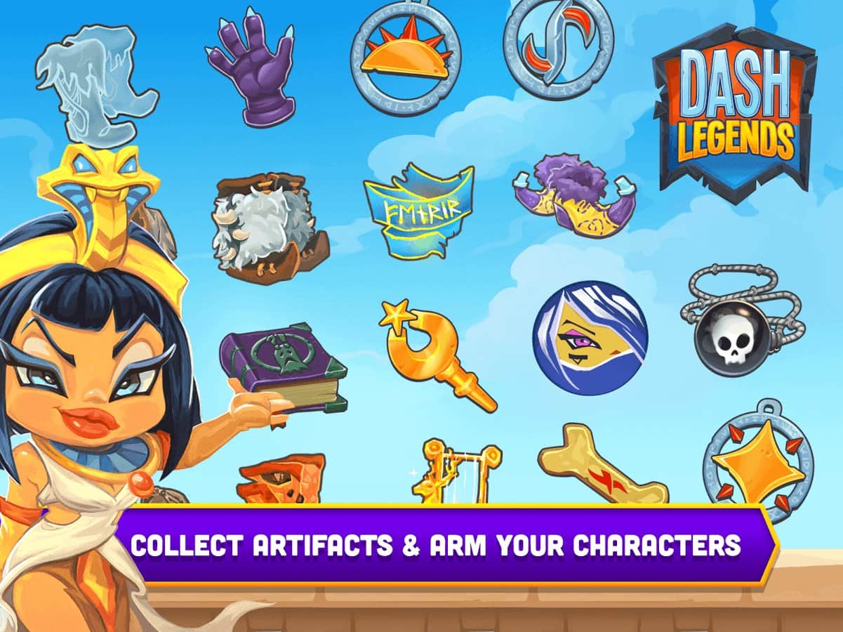 Dash Legends – многопользовательский раннер на андроид, где вы будете бегать по различным мирам в компании соперников. Выбирайте себе героя из 12 представленных в игре и начинайте свое путешествие. В этой игре вы будете перемещаться по трем различным локациям таким как: джунгли, гробницы с мумиями и горящие корабли викингов. Бросайте вызов своим соперником и приходите к финишу первым, обходя все преграды на пути. Не забывайте собирать по пути вашего следования многочисленные монетки и усиления. Приручайте различных питомцев и ездите на них верхом обгоняя соперников.