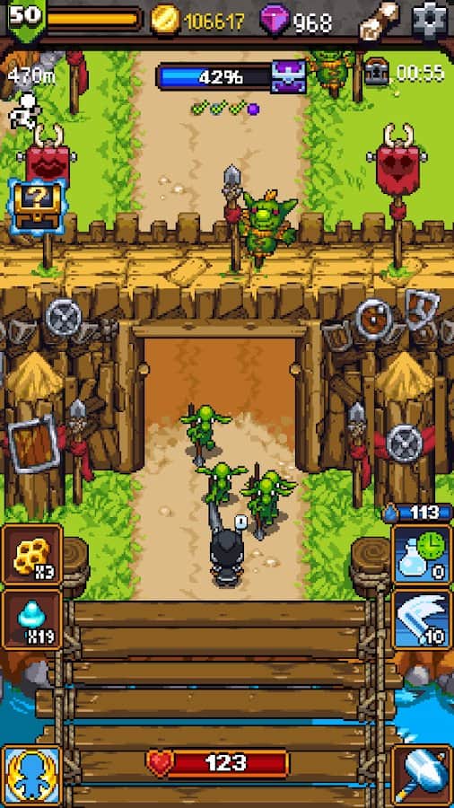Dash Quest Heroes – приключенческая игра на андроид, где вы будете управлять отважным героем и бороться с силами зла. В этой игре вы окажитесь в волшебном королевстве, где правят темные силы. Выбирайте себе героя - это может быть маг, воин, рыцарь или лучник и отправляйтесь в захватывающее путешествие по королевству. Исследуйте дремучие леса полные врагов, темные пещеры и огромные замки и везде сражайтесь с противниками, применяя уникальные способности героя и оружие. На своем пути вы будете встречать местных жителей, выполняйте их поручения и повышайте уровень героя. После битв с врагами собирайте ценные трофеи и броню и готовьтесь к битве с боссом.
