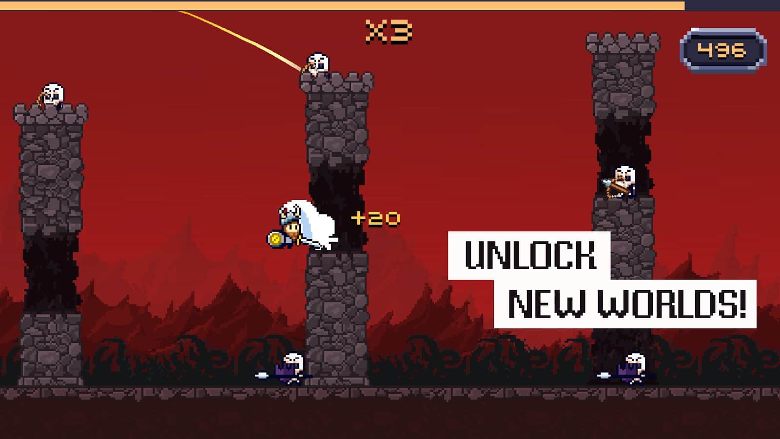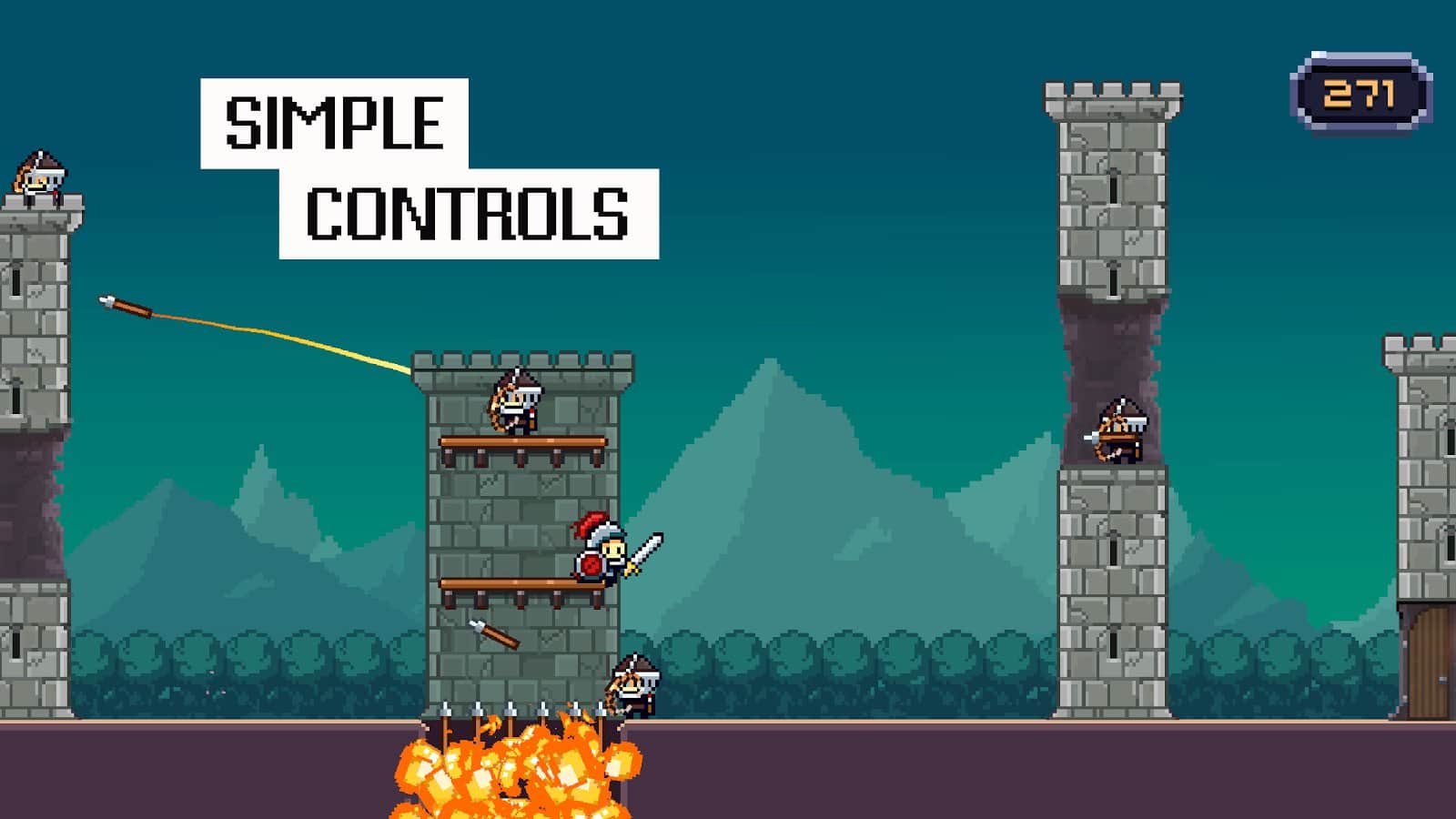Dashy Knight – возьмите под свой контроль отважного рыцаря который в одиночку решил победить всех врагов. В этой игре вы будете помогать рыцарю пройти по вражеским землям с многочисленными башнями, на которых сидят лучники. Управляйте рыцарем и вовремя нажимайте на экран своего телефона или планшета, чтобы герой совершал прыжки и перепрыгивал одну башню за другой. Совершайте стремительные прыжки и побеждайте всех своих врагов, двигаясь все дальше. Набирайте достаточное количество очков и открывайте новых героев и не забывайте устанавливать свои рекорды в этой игре.