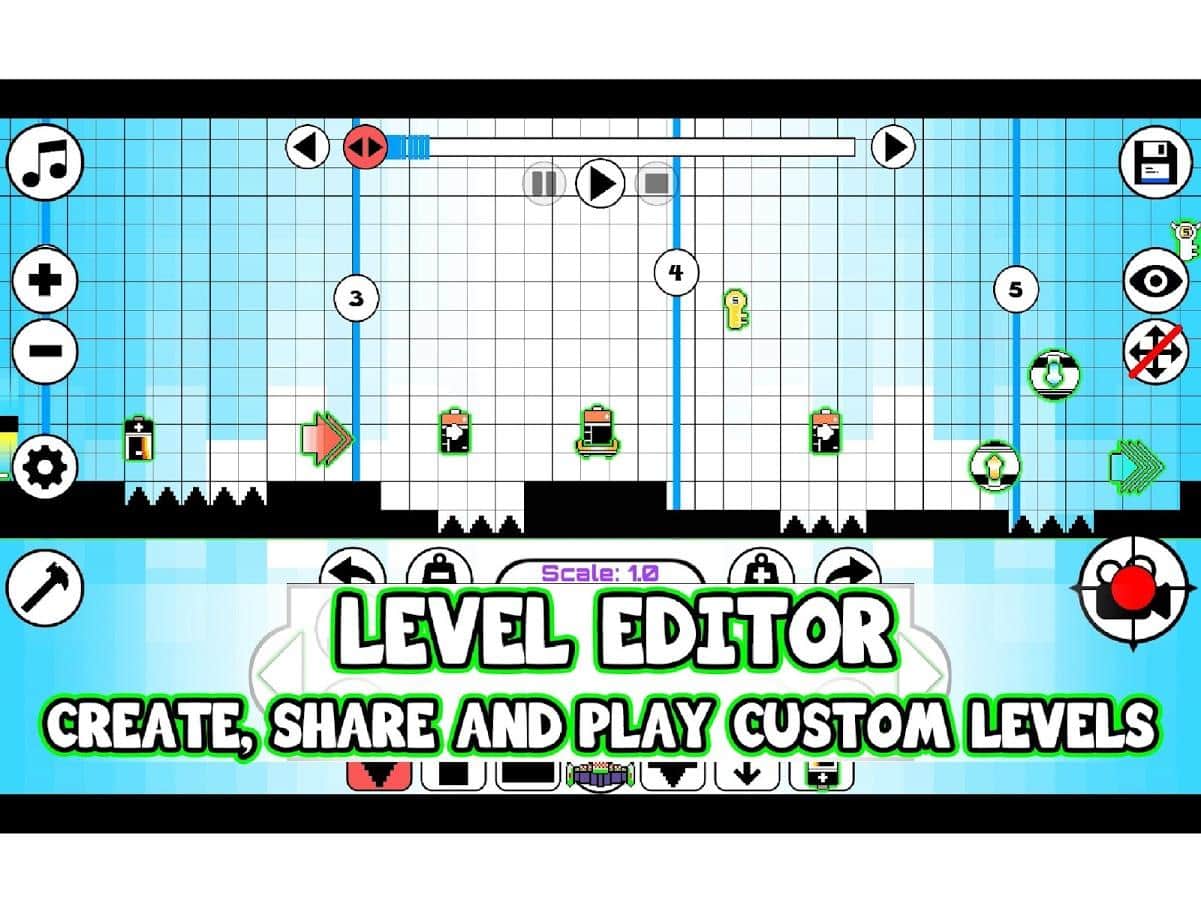 Dashy Square – музыкальная игра на андроид, с многочисленными уровнями и разнообразными саундтреками в жанре электрик. В этой игре вашей задачей будет провести вашего героя по сложным уровням с многочисленными преградами и препятствиями и двигаться в такт музыке. Выбирайте себе одну из 300 композиций представленных в игре и начинайте свое путешествие. С помощью редактора уровней создавайте свои неповторимые уровни и делитель ими с друзьями. В игре также представлено более 150 персонажей, которых вы сможете менять по своему усмотрению. Собирайте по пути трофеи, специальные ключи, достижения и поднимайтесь все выше в таблице лидеров.