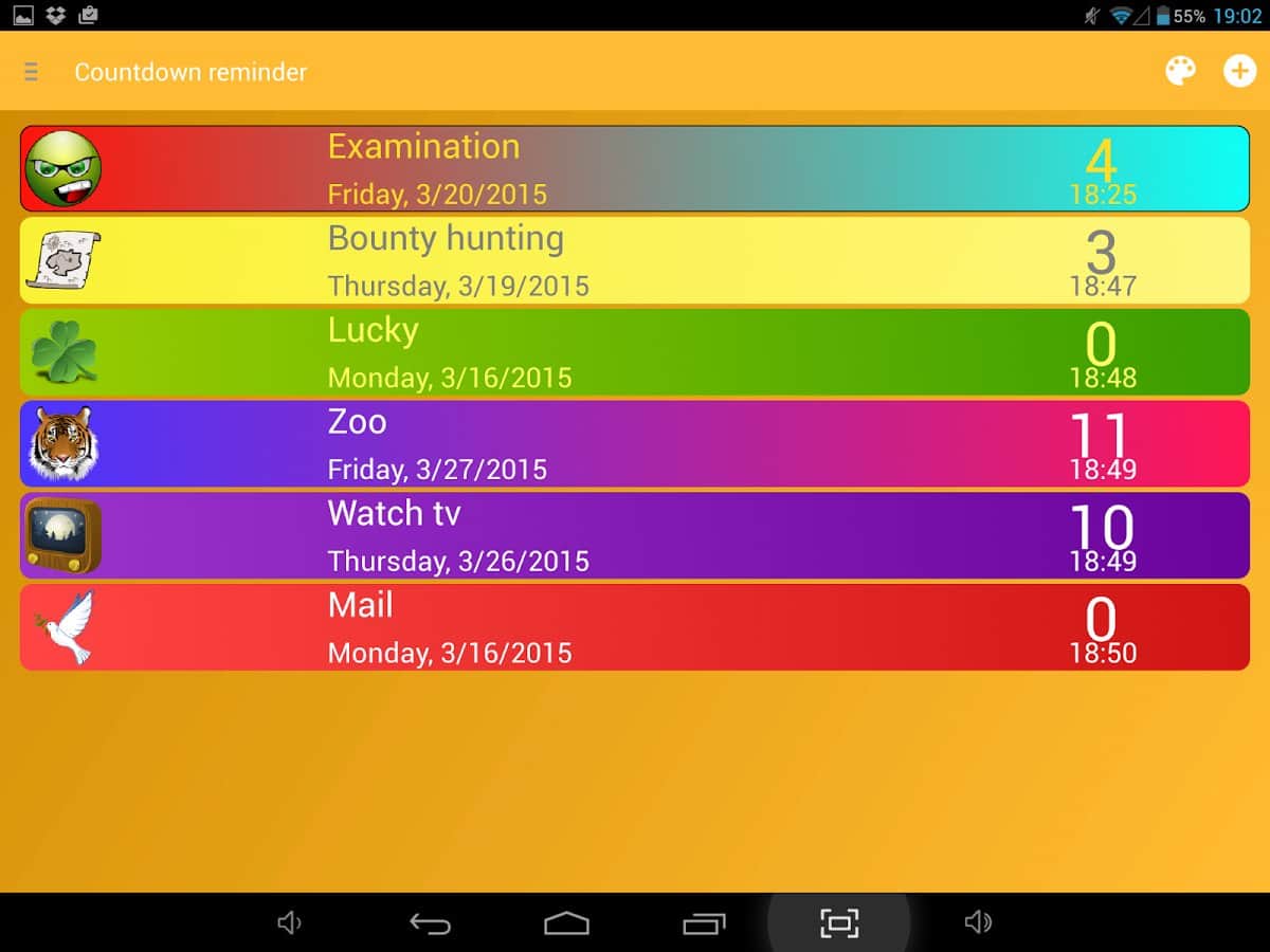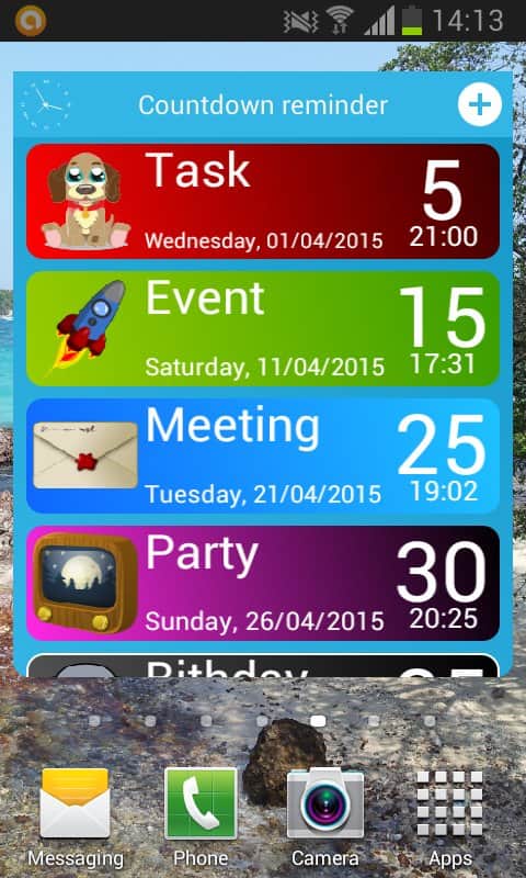 Date Countdown Reminder - порой бывает, что человек просто не способен запомнить всю информацию, которая ему необходима. Запланированные встречи, отсчёт времени, дни рождения друзей, коллег и родственников. Всё это запоминать не надо, вместо вас это сделает приложение, просто введите нужную информацию и программа своевременно оповестит вас об этом. Приложение имеет в своём функционале виджеты, которые удобно размещать на рабочем столе. Они наглядно показывают сколько осталось времени до той или иной даты.