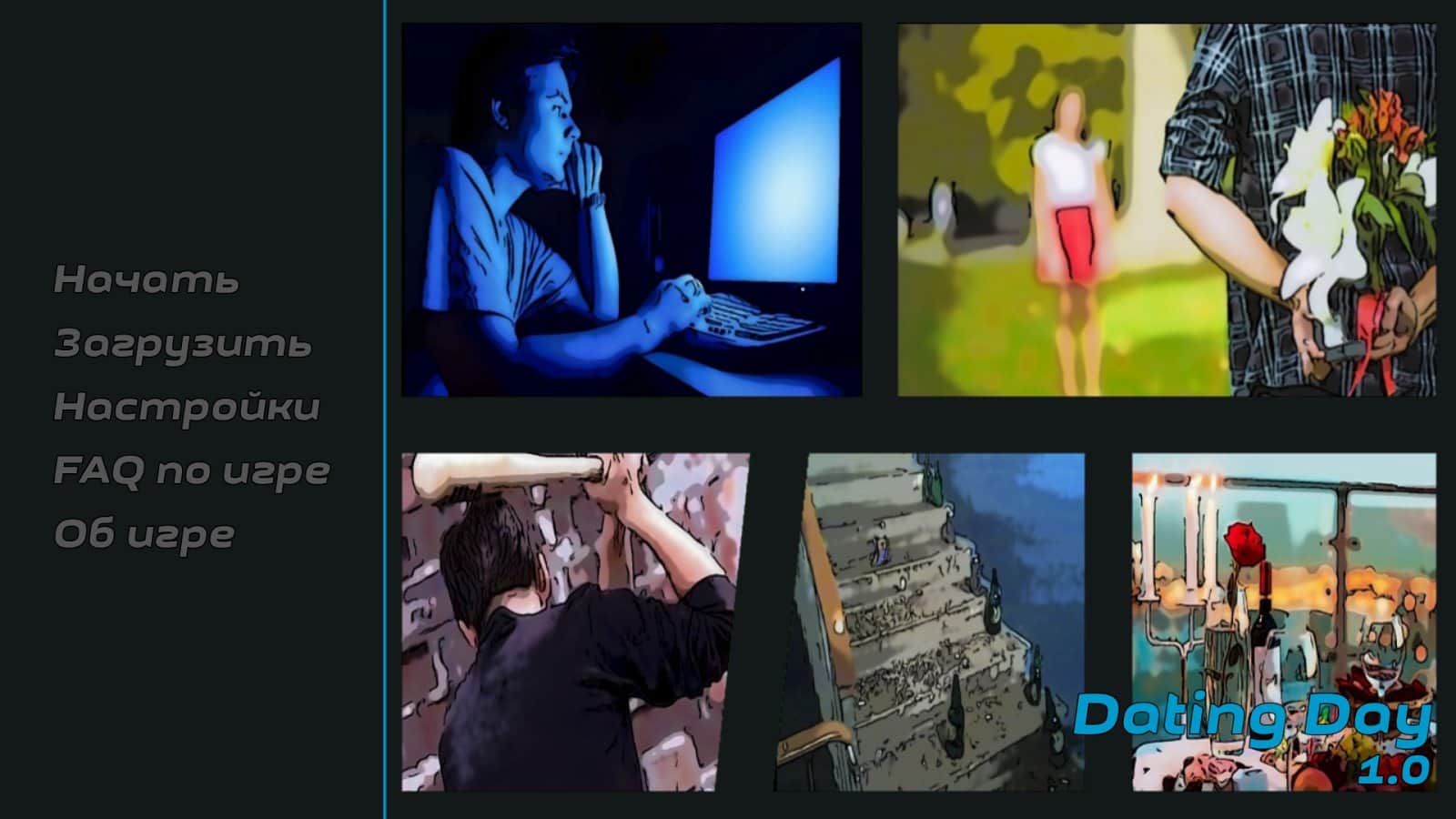 Dating Day - Симулятор знакомств – визуальная новелла на андроид, где вы будете ходить на свидания. В этой игре вашей главной задачей будет помочь парню Валентину найти себе девушку в интернете. Наш герой очень застенчивый и может знакомиться с девушками только в интернете, ходя на свидание одевает различные маски, притворяясь другим человеком. В этой игре вы найдете 15 девушек, 5 локаций для свиданий и несколько моделей поведения героя таких как: гопник, пикапер, рэпер, романтик и другие. Приглашайте девушек на свидания и выбирайте самостоятельно место встречи и кем предстанет ваш герой на этот раз. Для того чтобы позвать очередную девушку на свидание вам необходимо пройти предыдущие. В игре присутствуют деньги, которые вы сможете заработать или проиграть в казино.