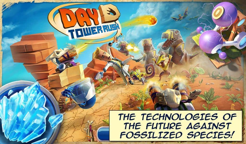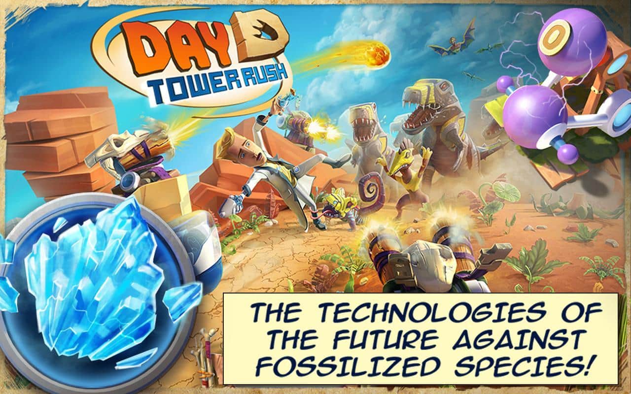 Day D: Tower Rush - тактическая стратегия из серии оборона башен в основу которой легла классическая игровая механика со всеми привычными атрибутами жанра. И так, ваша задача выстраивая линии обороны и системы защиты отбивать волны нападения. Так что перед нами привычный Tower Defense, но это только в отношении игрового процесса, а вот над сюжетной линией разработчики постарались. В результате неудачного научного эксперимента вы оказались в древнем мире, а точнее во времена Юрского периода, к счастью вам удалось прихватить с собой не только последние технические наработки, но и научные идеи и современные знания. Так что теперь вам предстоит противостоять силе доисторических ящеров при помощи современной науки, используя при этом последние образцы вооружения.