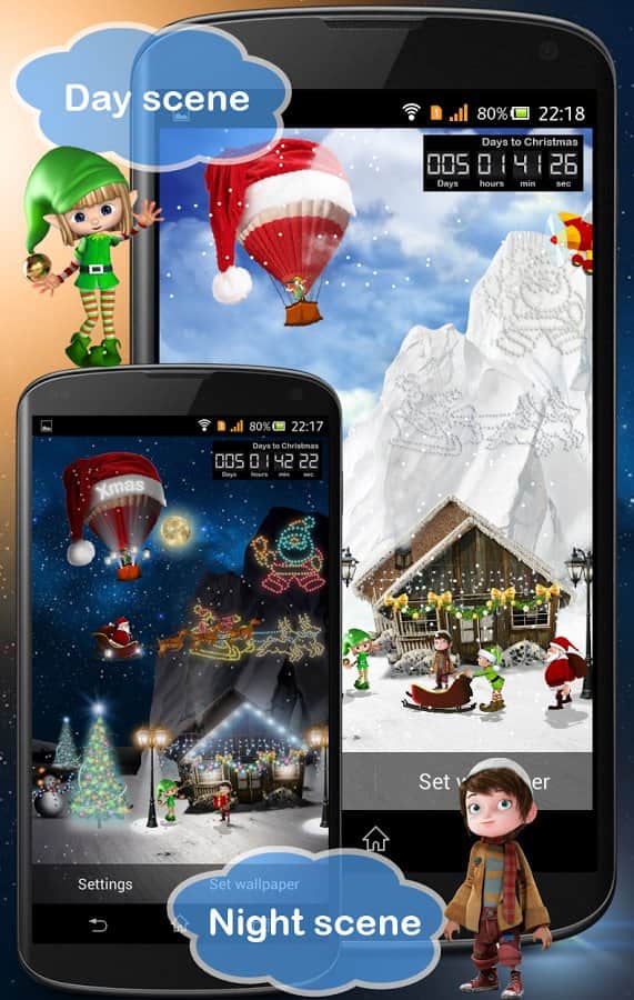 Скачать программуDay Night Xmas LWP 2015
