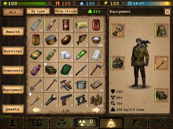 Day R Premium – захватывающая игра для IOS, где вы будете выживать в ядерном пост апокалиптическом мире. Эта игра перенесет вас в далекое прошлое в 1985 год, где на СССР напал невидимый враг и за считанные дни, уничтожил всю страну, запустив ядерное оружие. Вы один из немногочисленных выживших после ужасной войны и теперь вам предстоит выживать в этом опасном и разрушенном мире. По улицам многочисленных разрушенных городов бродят монстры и мутанты, а также бандиты которые являются для вас большей опасностью. Вас также будут мучат болезни, голод, усталость и травмы. Исследуйте многочисленные пустоши и добывайте себе оружие и пропитание. Постарайтесь выжить в гонке со смертью и не дать ей победить вас.