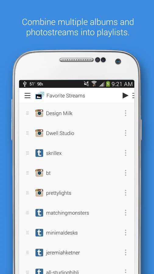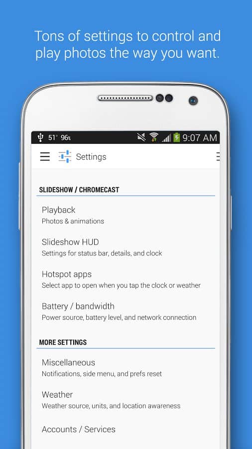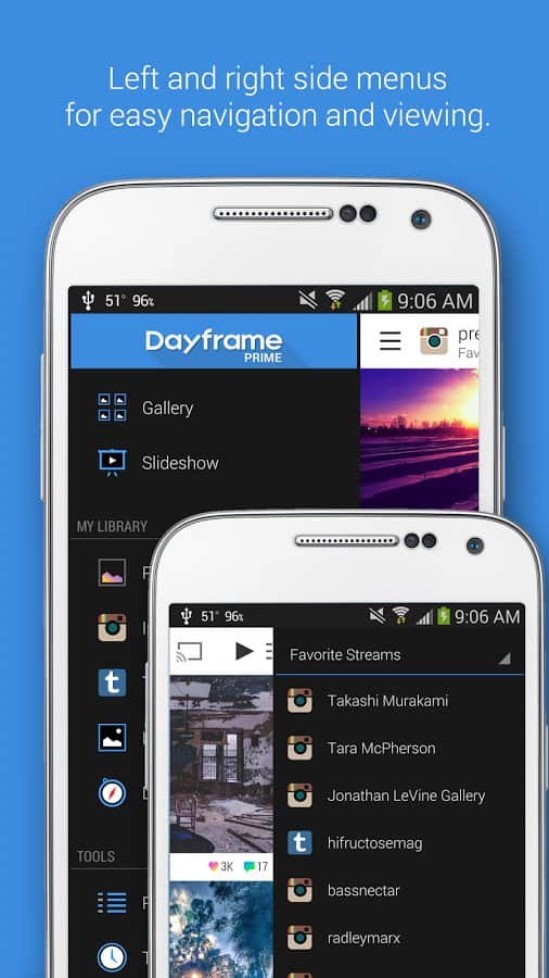 Dayframe (Photos & Slideshow) - Превратите ваш смартфон или планшет в огромную и многофункциональную фоторамку. С помощью этого приложения вы сможете задавать целый набор своих фотографий, которые будут по очереди будут показываться на вашем экране. При помощи встроенного слайд шоу. Так же, вы сможете передавать свои фотографии на экран телевизора.