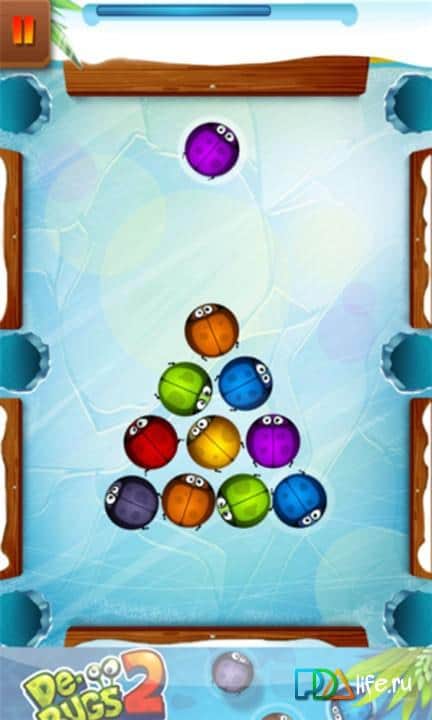 De-BUGS Pool - аркадная игра в пул, забивайте в лузы не шары, а разноцветных жуков.