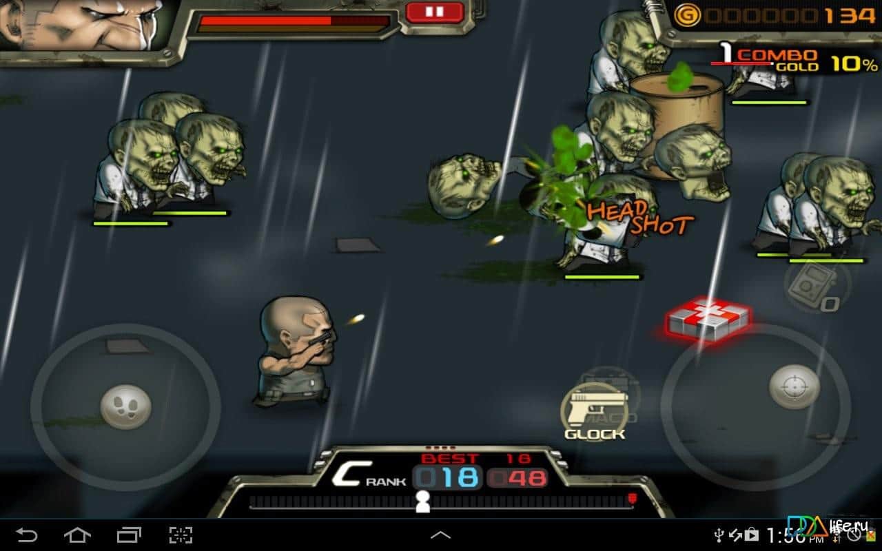 Dead City - отменное название для такой игры - зомби кишат вокруг! Город мертв - об этом говорят толпы зараженных вирусом жителей! Используйте все средства для борьбы - от оружия до авианалетов и просто давите зомбаков! Итак, вас ждет 18 видов оружия, 24 типа брони, режим гоночного боя, снайперские выстрелы, апгрейд вооружения и транспорта и масса беспредела! Хоть это и 2D, но стрелять вы сможете в любом направлении и делать это можно бесконечно, ведь уровней немеряно!