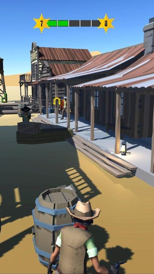 Dead Eye Deputy – откройте для себя мир Дикого запада и участвуйте в перестрелках с бандитами, бросайте вызов самым жестоким и отпетым мошенникам и побеждайте. Наслаждайтесь графикой и геймплеем, прокачивайте оружие и тренируйте меткость. Вы сможете заработать на лошадь и исследовать локации виртуального мира, выигрывайте ежедневные награды и бонусы, стреляйте по мишеням, бутылкам или устраивайте дуэли и разблокируйте доступ к пистолетам и аксессуарам. В каждом уровне у вас будет персональное задание и возможность играть в мини-игры.