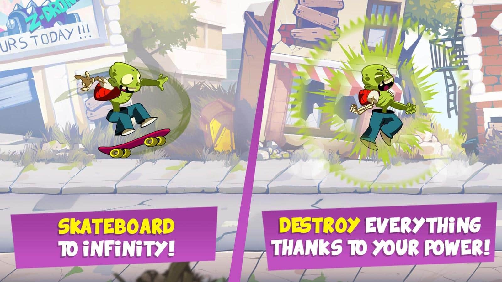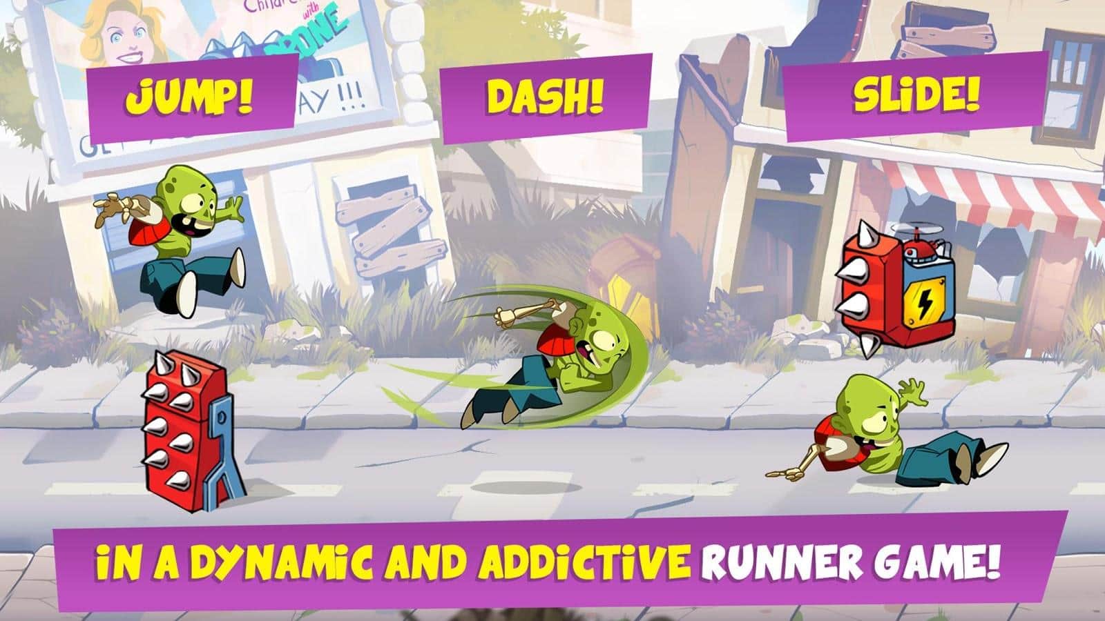 Dead or Undead – раннер на андроид, где вы будете помогать зомби убежать от разъярённой толпы людей. В этой игре вы возьмете под свой контроль зомби и проведете его по всем уровням стараясь выжить. Бегите вперед и вовремя нажимайте на экран своего телефона или планшета для того чтобы герой перепрыгивал препятствия или проскальзывал под ними. По пути собирайте многочисленные усиления и бонусы, такие как скейтборд и с помощью него двигайтесь намного быстрее. Играйте в эту игру и наслаждайтесь захватывающим игровым процессом, яркой графикой и многочисленными усилениями. Играйте и поднимайтесь все выше в таблице лидеров, соревнуясь с друзьями.