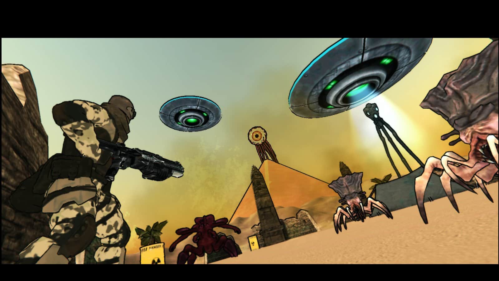 Dead World Apocalypse: Zombie - мы в роли обычного мертвеца-шерифа с его собакой должны отбить вторжение древних инопланетян, вернувшихся на Землю на летающих тарелках. В игре есть несколько видов оружия, которые помогут нам разбить иноземных захватчиков на уровнях, которые добавляются с обновлениями. После же миссий, можно отдохнуть и набраться сил для следующих сражений с чужаками нашей Вселенной. Но не забудьте и о фонарике, ведь некоторые места без него практически невидимы вашему мертвецкому глазу