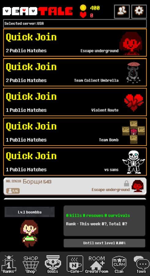 Deadtale Online: Hide & Escape / DeadtaleИнтернет для Undertale - Весьма необычная онлайн песочница в которой есть целая куча мини игр. Суть игры заключается в том что внутри вы найдете большое количество игровых комнат с различными режимами. Это могут быть как прятки где вас будет искать один человек, так же это может быть история от персонажа в которой он периодически будет пытаться вас убить. В целом это очень забавный и необычный сборник где вы сможете играть с друзьями.