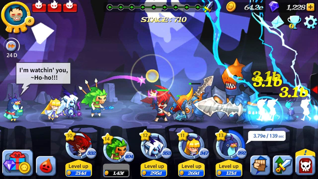 Dealers Only Squad – игра на андроид, где вы будете управлять отрядом сильных героев и сражаться с многочисленными врагами. В этой игре вы будете вести своих героев вперед и вступать в битву с монстрами и врагами применяя в бою уникальные умения. Соберите свой отряд из воинов, магов, шаманов и других героев и дайте отпор силам зла. После удачного боя собирайте ценные трофеи и золото. Повышайте боевую мощь каждого персонажа из вашего отряда и наделяйте их оружием и снаряжением. Открывайте новых героев, которые порадуют вас уникальными навыками, которые пригодятся вам в битвах. Прокачивайте героев, делая их сильнее.