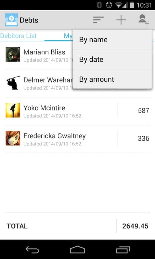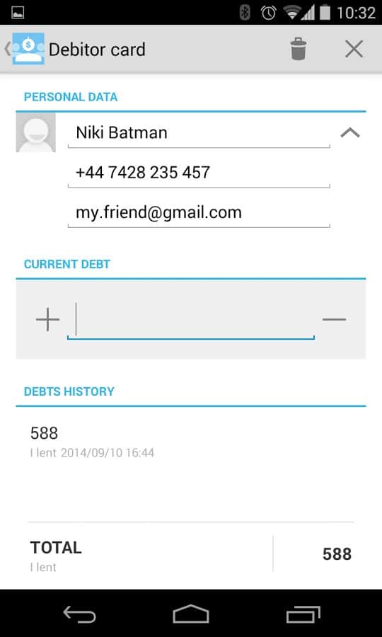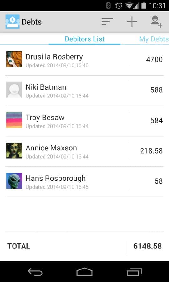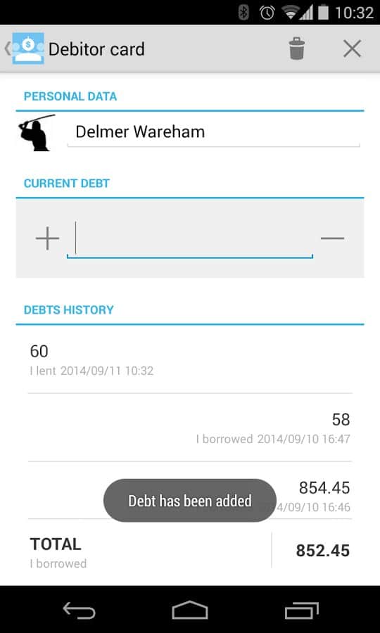 Debts / Долги – как говорится: «Если вы должны сто рублей - это ваша забота. Если вы должны миллион - это уже забота вашего кредитора». Скачиваем и устанавливаем данную программу, которая является, по сути, менеджером по хранению информации о долгах и должниках. Debts имеет простой интерфейс ориентированный на интерфейс программы Гугл, не содержит ничего лишнего. Приятного пользования, а так же хорошего и крепкого сна вам.