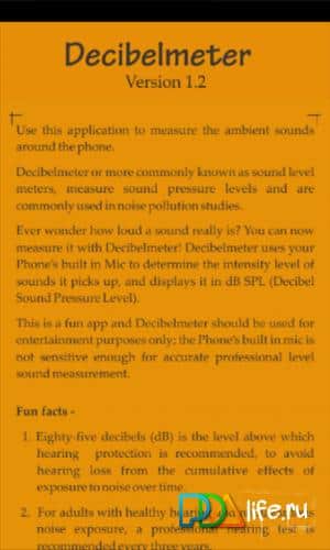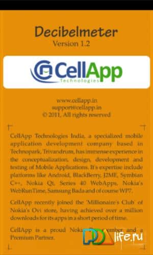 Decibelmeter – полезная программа для любознательных и следящих за своим здоровьем обладателей Windows Phone 7.5, которая измерит слышимый уровень шума человеческого восприятия.