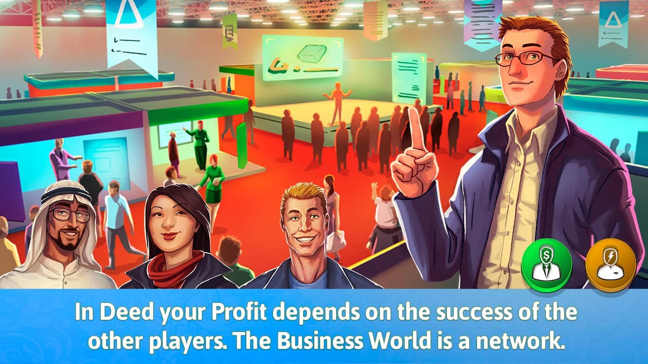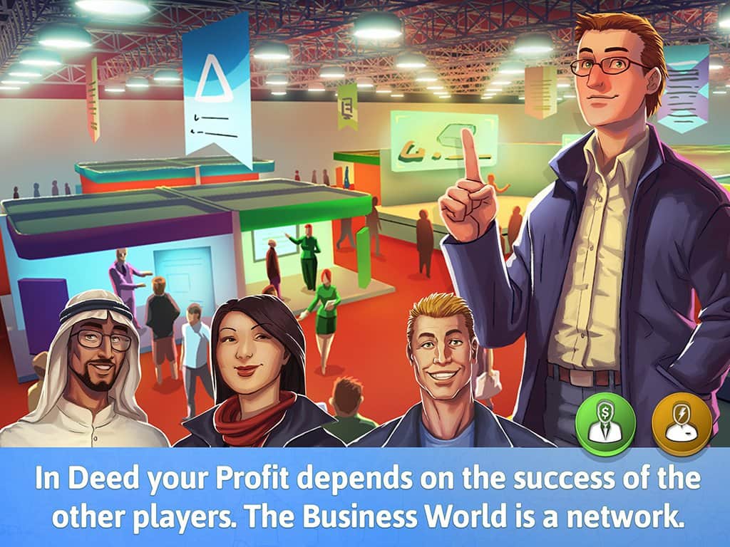 Deed - The Game – интеллектуальный бизнес без вашего вмешательства работать не будет. Берём в руки свой гаджет, устанавливаем игру и вперёд зарабатывать миллионы. Играть можно как в автономном, таки м многопользовательском режиме. Вашей задачей является реализовать по максимуму инвестиционных проектов в компании друзей сделать это становится легче. Используя 5 основных ресурсов на планете: Люди, Знание, Технологии, природных ресурсы и финансы; вы сможете добиться того, что вам раньше даже и не снилось. Отличная настольная игра для широкого круга игроков.