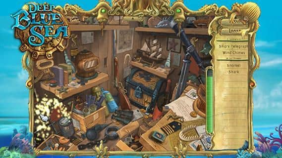 Deep Blue Sea – Джессика таинственным образом исчезла два года назад, поиски велись долго и было потрачено много времени на то, чтобы найти девочку. Спустя некоторое время поиски прекратились и семья потеряла надежду на её нахождение. Но в один прекрасный день сестра Джессики получает открытку на секретном языке, который знают только они. Сестра уверена что Джессика жива, и она начинает свои подводные путешествия в поиски пропавшей сестрички. Соберите команду из четырёх дайверов и начинайте поиски. Очищайте всё игровое поле от ненужных предметов и находите скрытые предметы, а также подсказки.