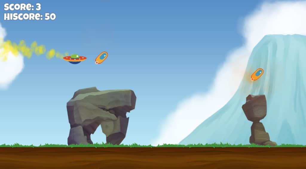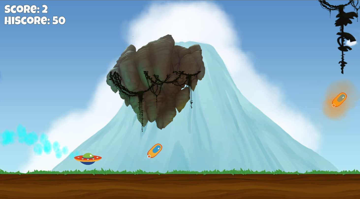 Постарайтесь любыми способами избежать падения или столкновения с лишними предметами на вашем пути, управляя собственной летающей тарелкой. Уворачивайтесь от опасных гейзеров с перепадами температуры, собирайте спасательные капсулы, уворачивайтесь от островов из камней в небе и следуйте дальше. Самое главное вовремя нажимать на экран, потому что только благодаря удачным кликам ваш корабль остается в воздухе и передвигается прямо. Начните свое новое приключение прямо сейчас, вы точно надолго залипните!