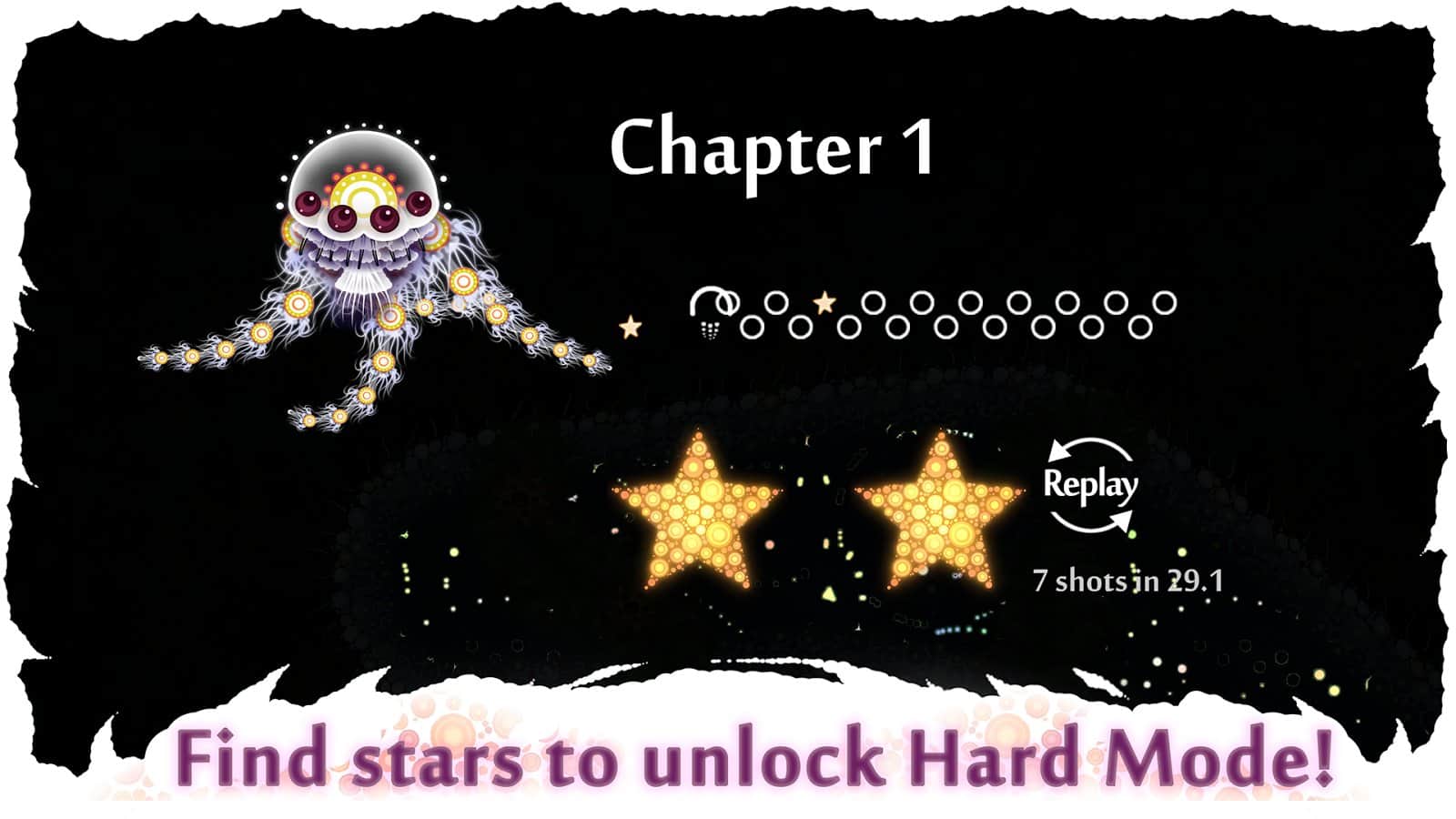 Deep Under the Sky - Насладитесь непревзойденными видами, напоминающие космическое пространство, самостоятельно продвигаясь по более 80 разнообразным уровням. Вам будет доступно четыре мира, прохождение каких будет проводиться под трип Чилл-аут саундтреки, а возможности будут зависеть от ваших действий и силы физических возможностей. На пути вам могут встретиться бонусные звезды, их обязательно необходимо собирать, если вы хотите окунуться в игру еще больше и открыть хардкордные уровни. Проводите взрывы в качестве медузы и дойдите до самого финала!