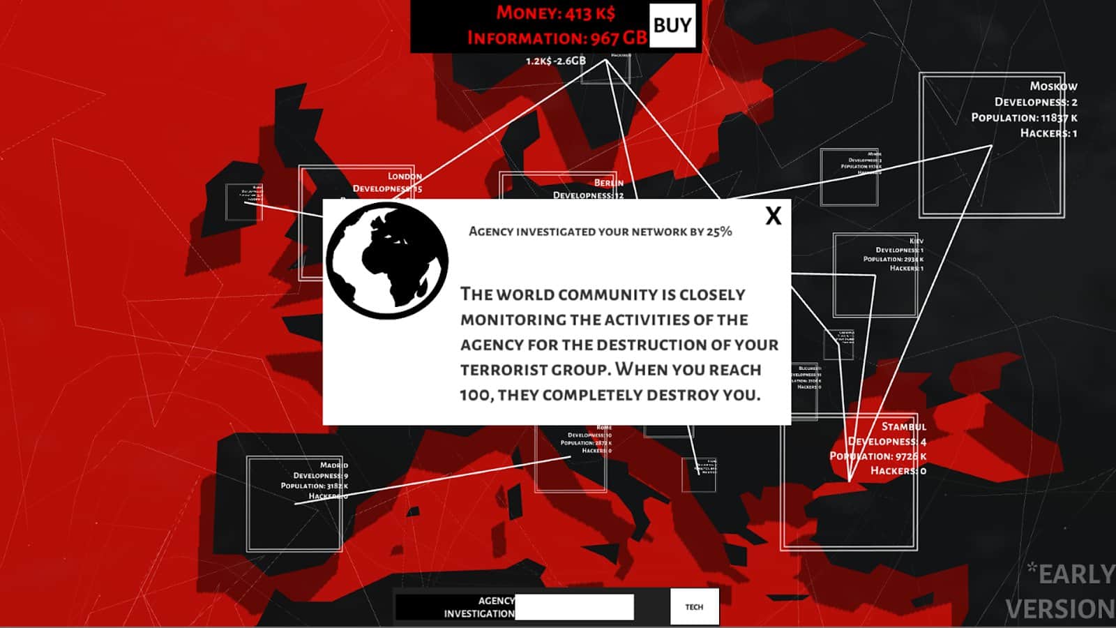 Deep Web Game: Dark Strategy – симулятор на андроид, где вы будете выступать в роли главы хакерской организации. Возглавьте террористическую хакерскую организацию, которая занимается атаками на различные организации и старается уничтожить всю компьютерную сеть. Вашей задачей будет прервать поставки оружия в армию, удалить все социальные сети и сделать все возможное, чтобы заработать миллионы долларов. Скрывайтесь как можно тщательней и не дайте агентам разведки раскрыть вашу сеть. Разрушьте любыми путями мировое сообщество и получайте все больше новой информации.