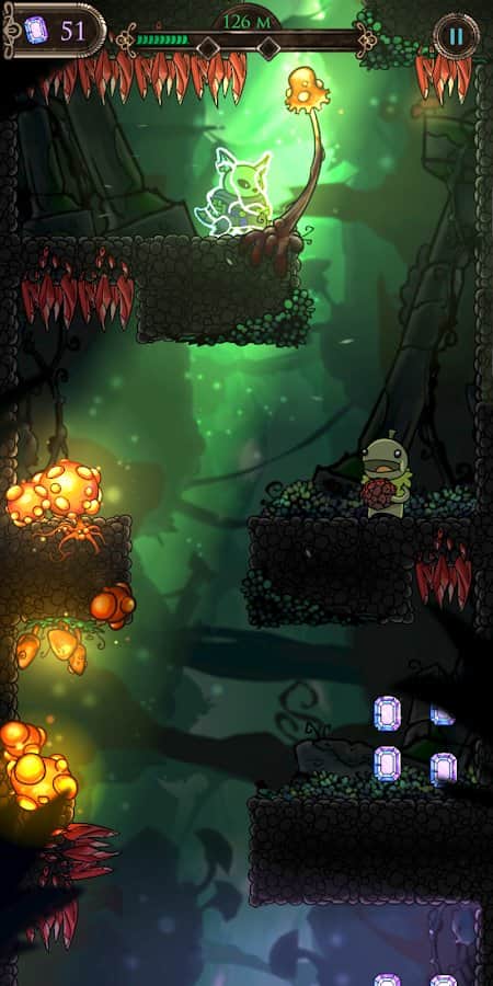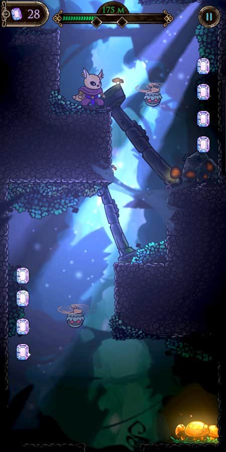 Deeprealm Odyssey - затягивающая игра на Android, в которой вам нужно помочь воину Лису пройти через подземелья, идущие вниз. Вас будут ждать различные препятствия и враги, но не дайте себя сломить и выйдите живым и невредимым из этого путешествия. Исследуйте две различные области: пышные глубины пещер грибов и готический пейзаж Залов Могил. Вас ждут различные бонусы, которые помогут вам покорить каждый уровень.