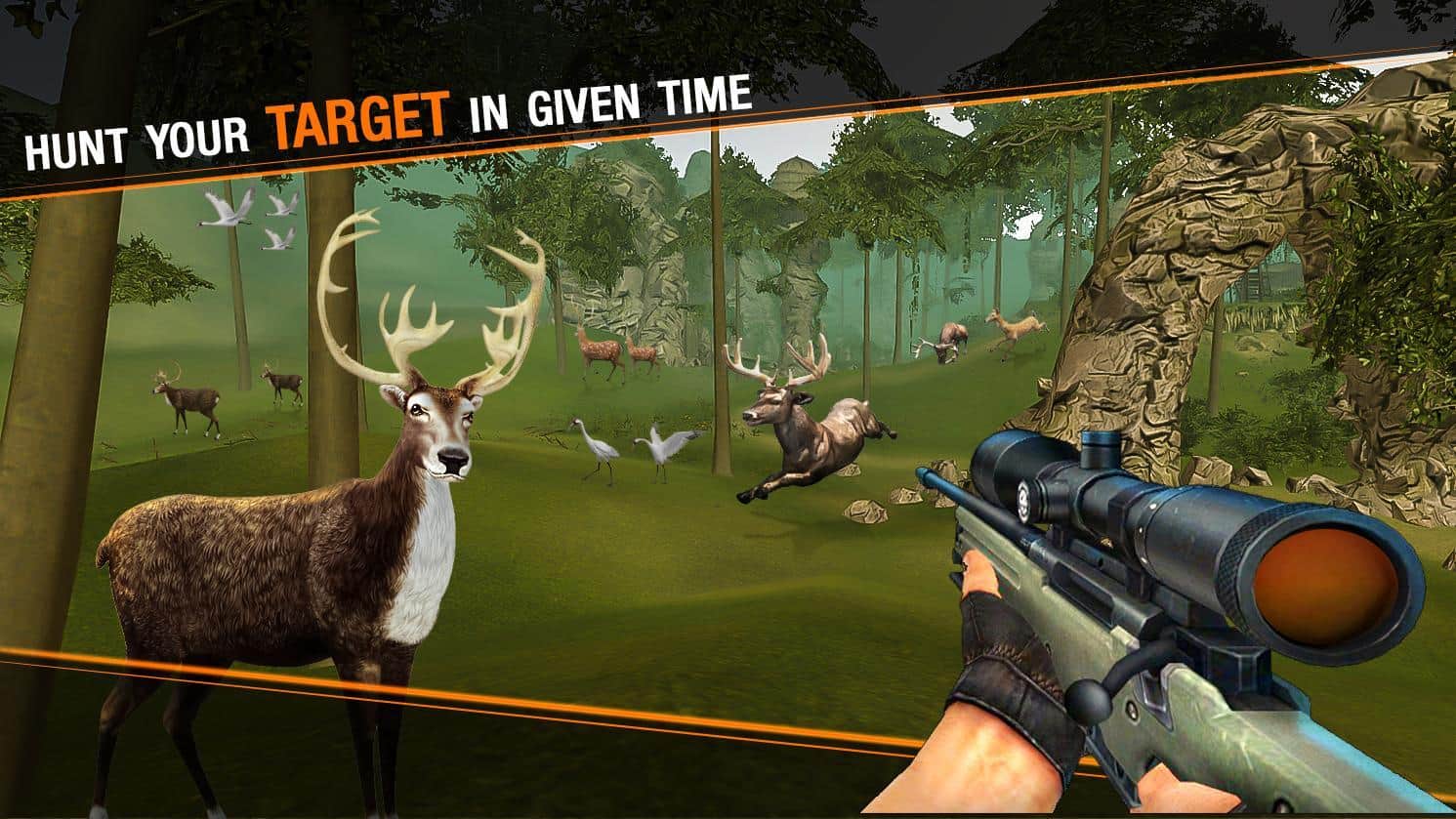 Deer Hunting Sniper Safari - Animals Hunt – игра на андроид, где вы возьмете в руки оружие и будете выполнять различные охотничьи миссии. В этой игре вы будете путешествовать по различным уголкам земного шара и вести охоту на разных животных, добывая ценные трофеи. Станьте профессиональным охотником и охотьтесь на слонов, оленей, волков, тигров, медведей и львов. Игра порадует вас не только большим разнообразие животных, но и огромным арсеналом оружия начиная от пистолетов и заканчивая снайперскими винтовками с оптическим прицелом. Прицеливайтесь и стреляйте точно в цель, выполняя все задачи. Поднимайтесь все выше в таблице лидеров и добивайтесь отличных результатов.