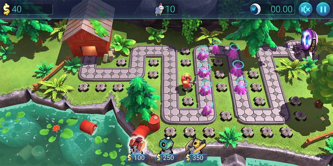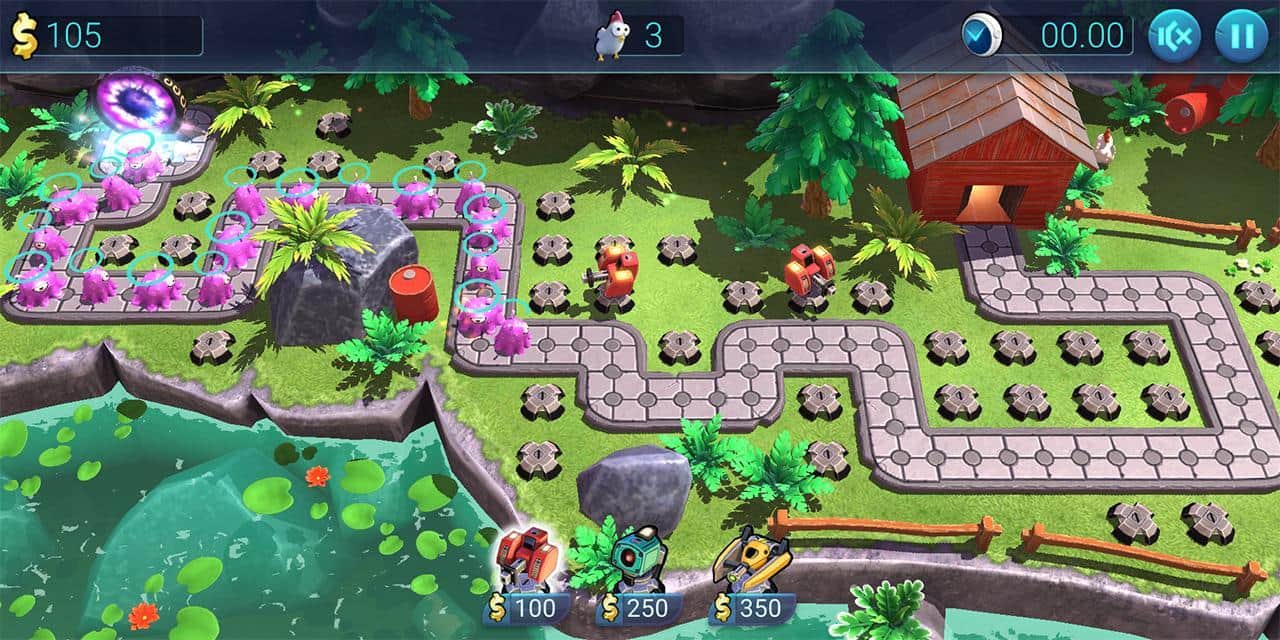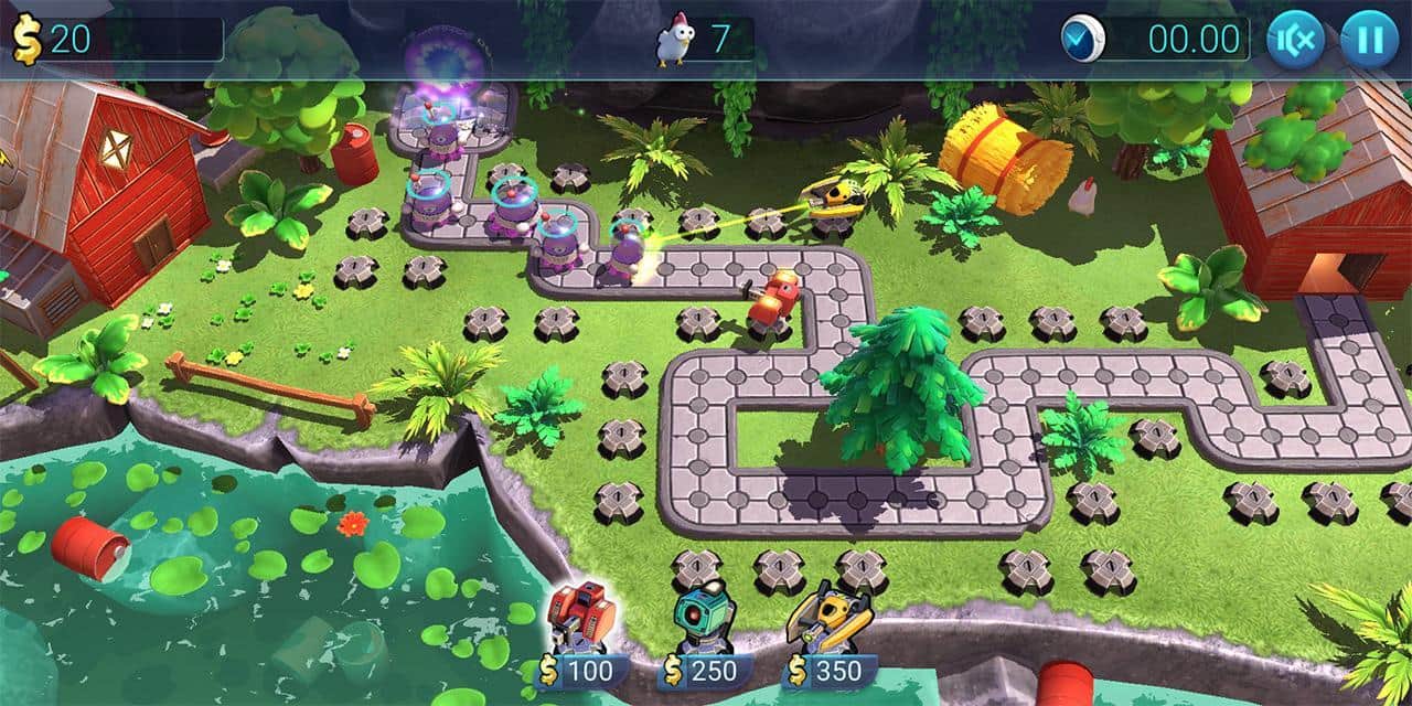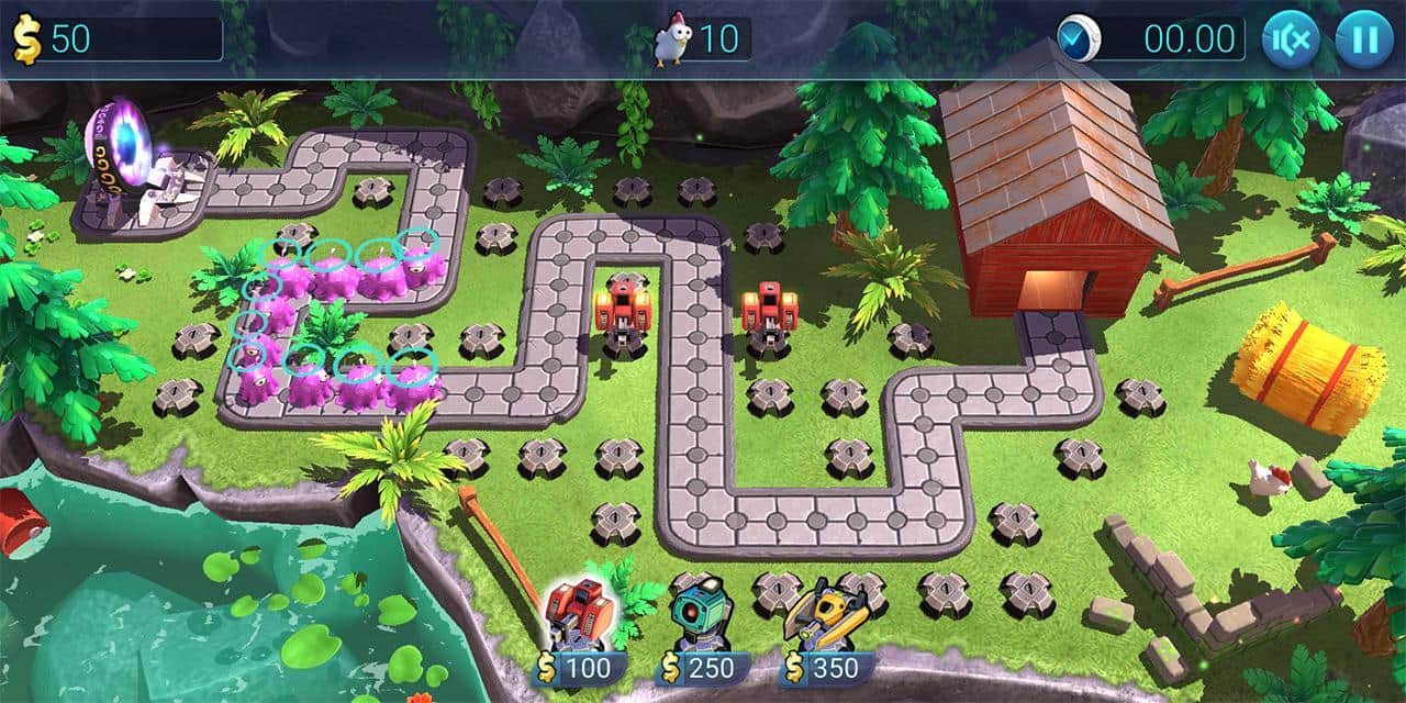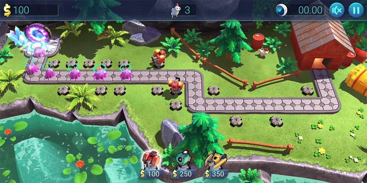 Defenchick TD - Tower Defense 3D game – стратегия на андроид, где вы будете защищать свою ферму от инопланетных захватчиков. Инопланетные захватчики прилетели на вашу планету и пытаются съесть всех ваших кур с фермы, не дайте им это сделать. Расставляйте по ходу движения инопланетных слизней мощное оружие и уничтожайте толпы противников. Постарайтесь спасти кур от гибели и не забывайте прокачивать и улучшать свое оружие. Открывайте для себя новые виды башен и победите всех врагов. Играйте в эту игру с видом сверху и наслаждайтесь отличной яркой графикой, простым управлением и понятным геймплеем.