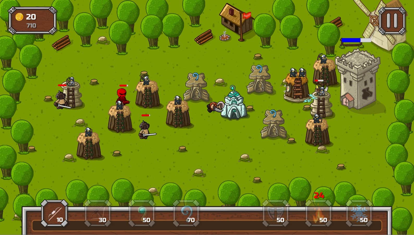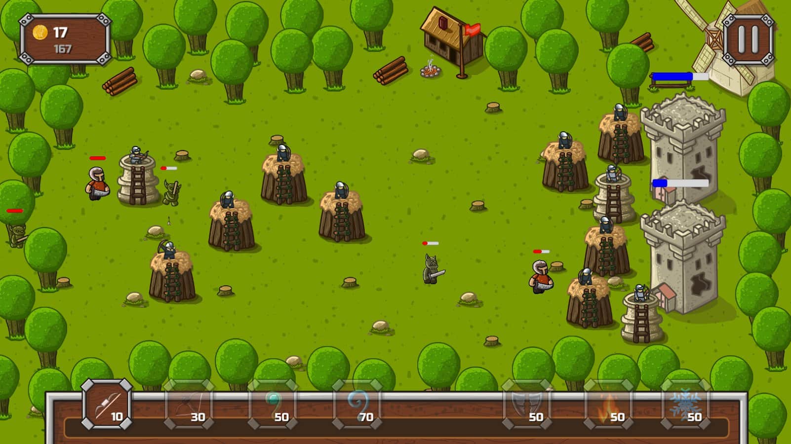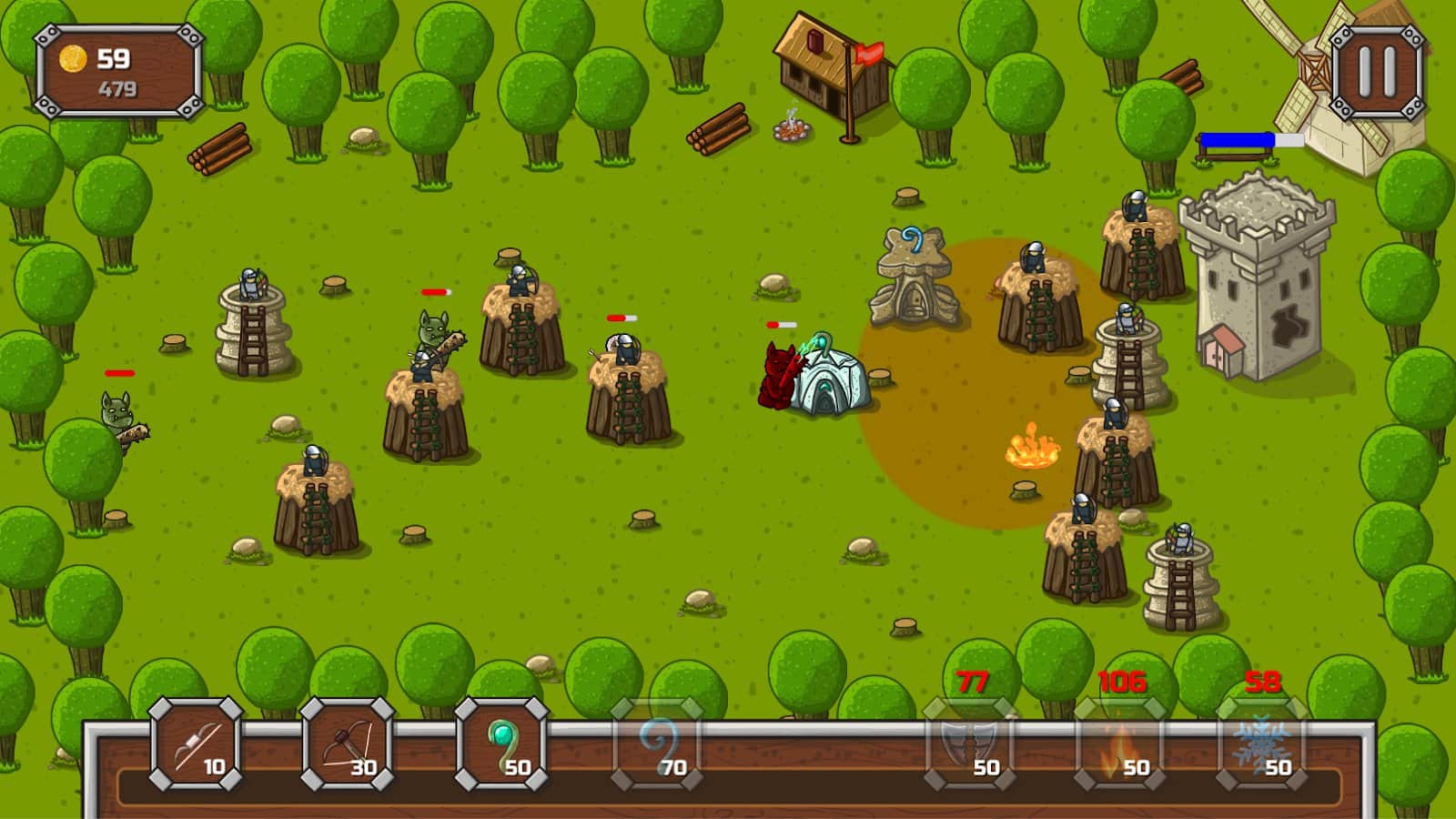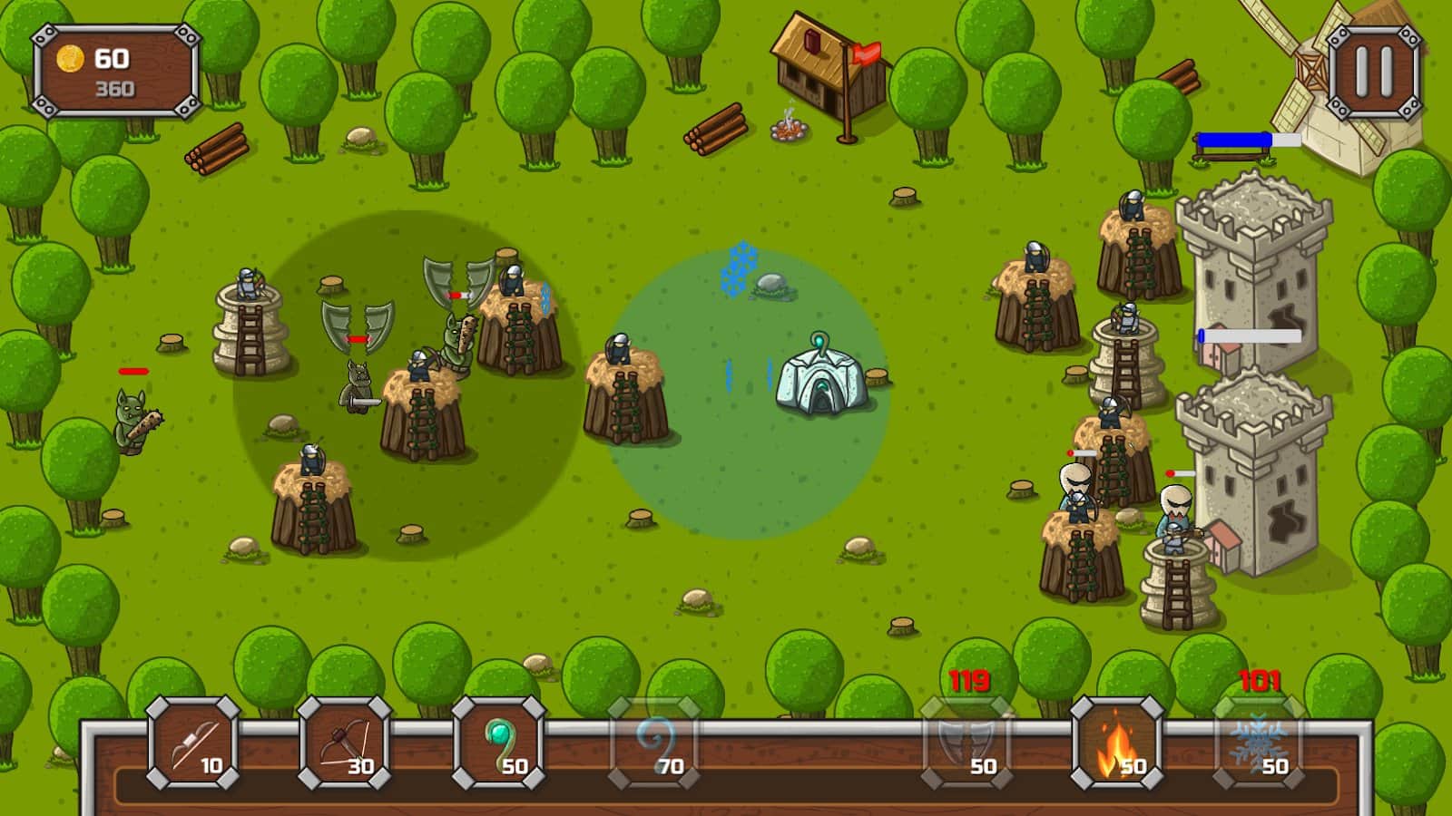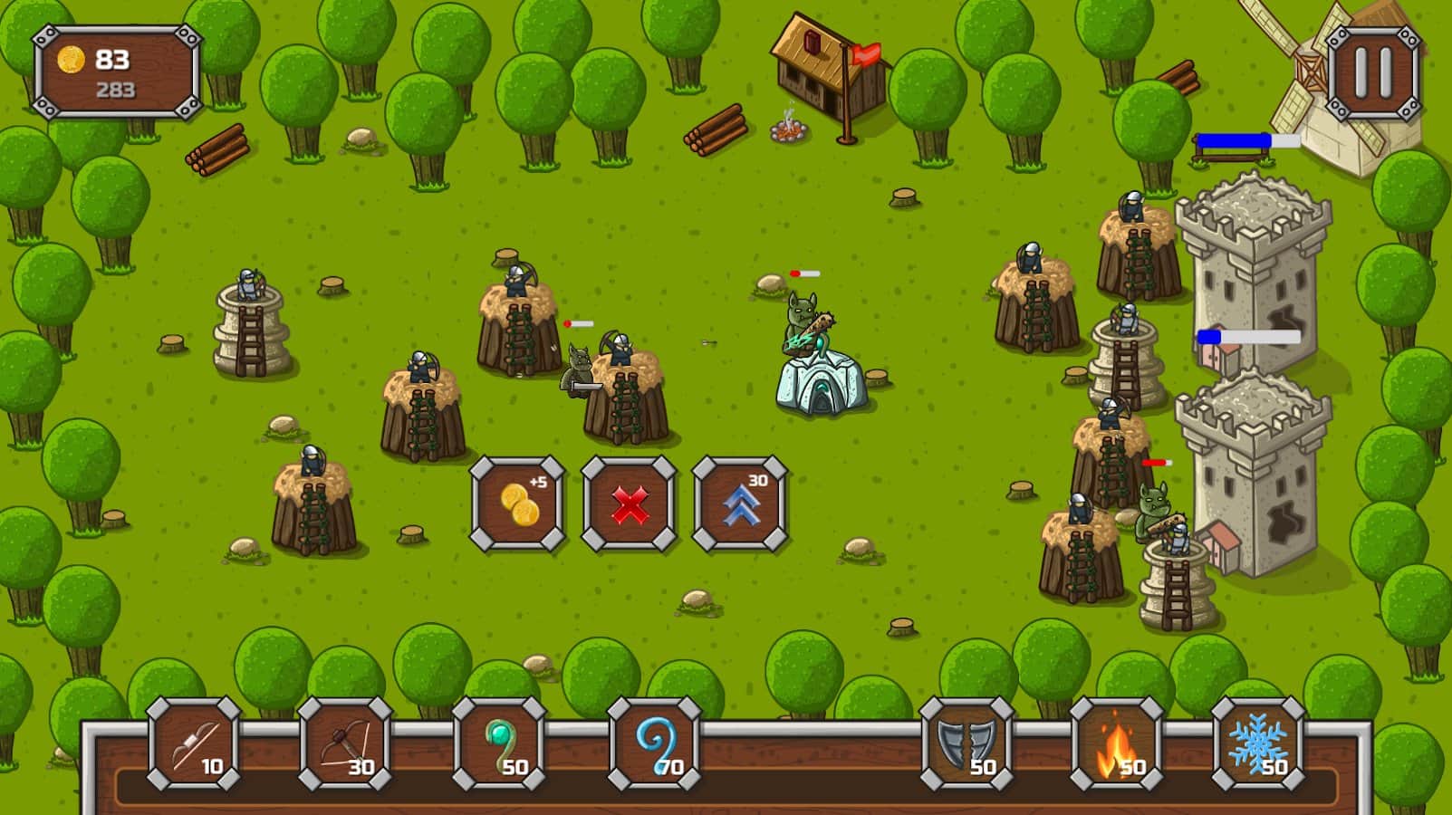 Defend My Towers! – захватывающая стратегия на андроид, где вы будете защищать свой замок от врагов. В этой игре вашей задачей будет строить башни в разных местах и уничтожать противника. Разрабатывайте свою тактику ведения боя и учитывайте сильные и слабые стороны противника. Применяйте заклинания и уменьшайте таким образом здоровье и защиту соперников, а также замедляйте их. Побеждайте в битвах и повышайте свой рейтинг поднимаясь все выше в таблице лидеров. В этой игре вы найдете несколько видов башен каждые из которых обладают разными свойствами.