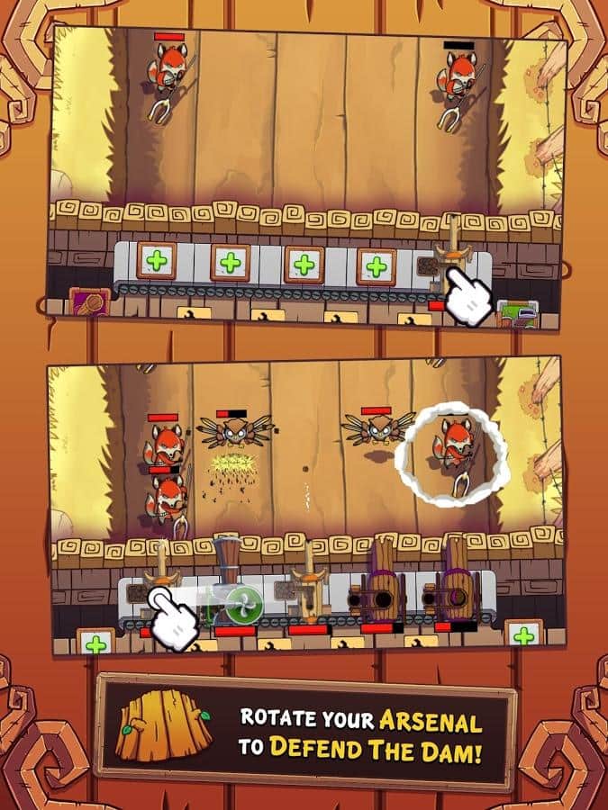 Defend the Dam – в глухой чаще есть река, а ан реке стоит платина. Злые и сильные животные хотят разломать платину для то го чтобы водой смыло все беззащитных маленьких зверей. Вам необходимо не допустить этого. Забираемся на платину и строим на ней различное защитное оружие: пушки различного калибра, мортиры, огромные арбалеты и другое. В игре возможна модернизация оружия и разблокировка нового более мощного вооружения. Помимо обычных зверей на вас будут нападать звери-боссы. Вот с ними придётся попотеть, но одолеть их всё же возможно. Не дайте врагу прорваться к платине!