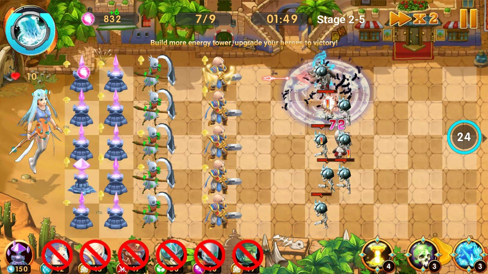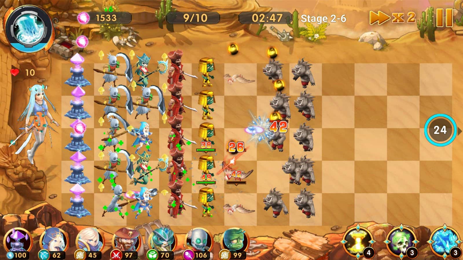 Defender Legend: Hero Champions TD – занимательная стратегия на андроид, где вы будете защищать свои земли от атак зомби. Соберите свою армию легендарных героев и защитите русалку, находящуюся в конце вашей обороны. Размещайте героев на шахматной доске и разрабатывайте свою тактику ведения боя. Тренируйте и прокачивайте умения своих героев и улучшайте их боевые качества. За каждого уничтоженного зомби вы будете получать монетки и алмазы. Готовьте своих воинов к битве с сильными боссами и пройдите все увлекательные уровни игры.