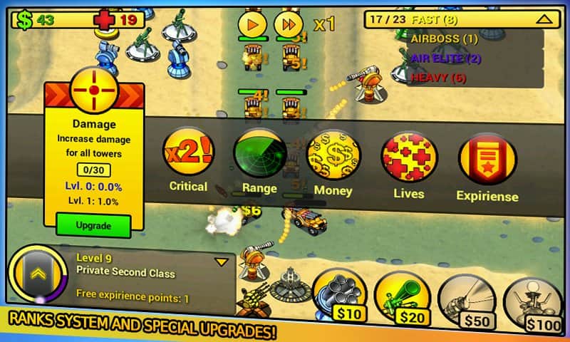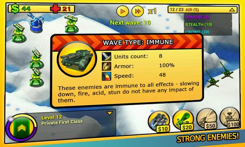 Defense Line - игра на аndroid, из жанра Tower Defense. Ваша задача, защитить вашу базу от натиска сильного противника. Для обороны в вашем распоряжении будут 15 новейших оборонных башни, каждая из которых обладает своими уникальными характеристиками и боевой мощью. Ваша задача заключается в правильной расстановке башен - это главный критерий победы на своим врагом.