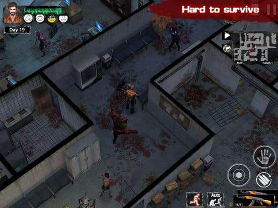 Delivery from the pain – стратегия для IOS, где вы будете выживать в условия зомби апокалипсиса. В этой игре вы будете играть роль выжившего который очнулся в больнице и выяснил что мир обречен на уничтожение. По сюжету игры ученые пытались найти лекарство от всех болезней, но неожиданно что то пошло не так и живительная сыворотка превратилась в оружие массового уничтожения. Все люди пробывшие это лекарство превратились в кровожадных монстров. Вашей задачей будет выживать в этом мире и искать таких же выживших как вы. В игре вы столкнетесь в разными видами зомби, за которыми вы должны наблюдать и искать их слабые стороны, атакуя их в подходящий момент. Стройте себе убежище и ищите оружие и пропитание.