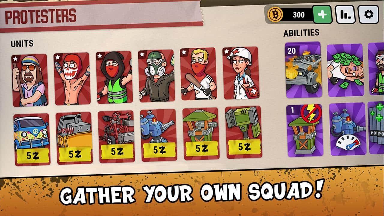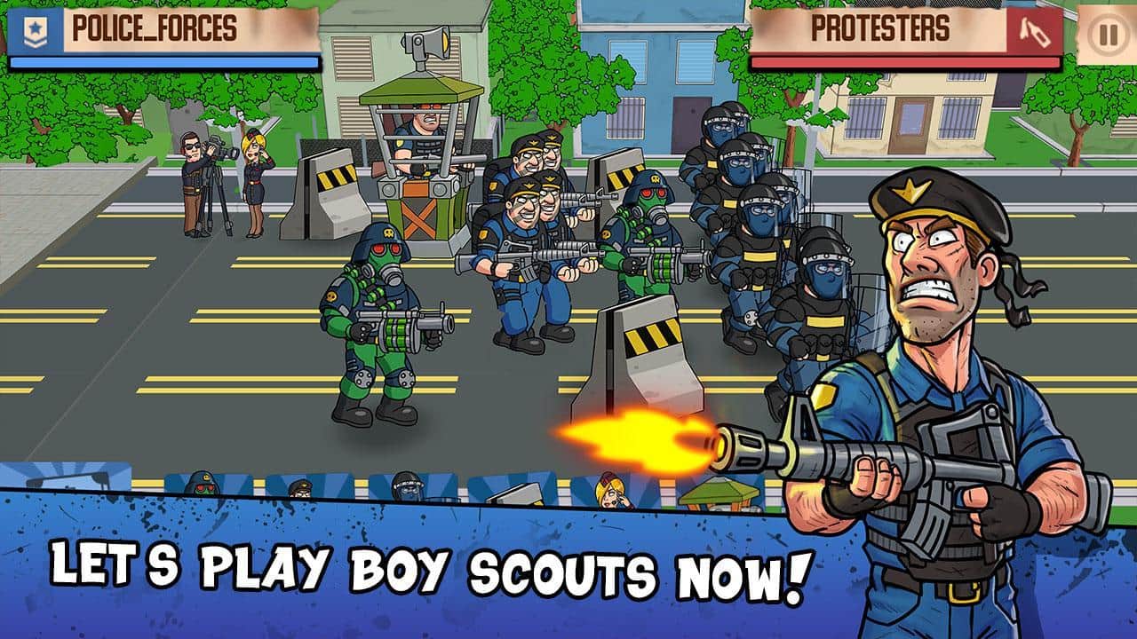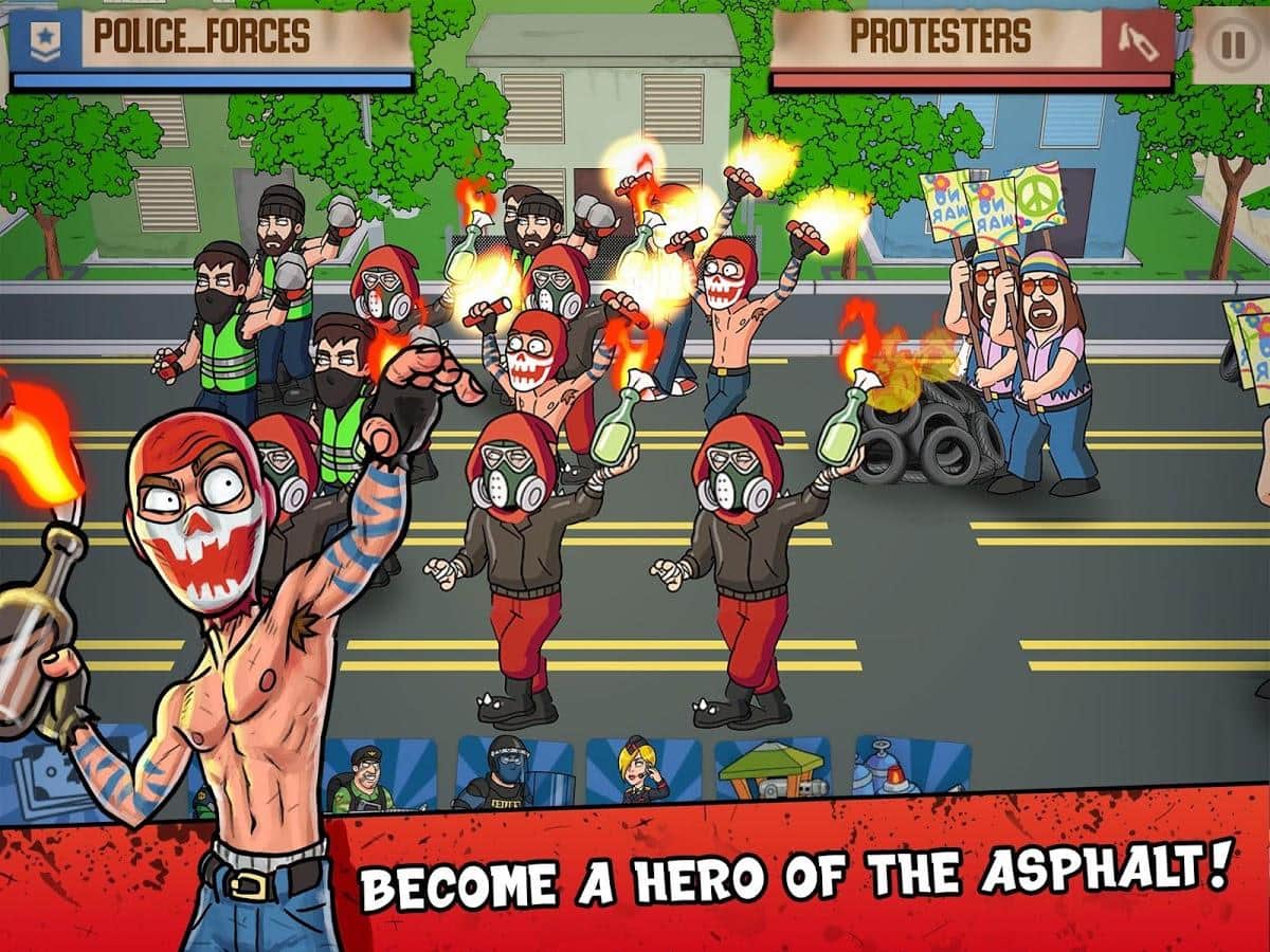 Democracy on Fire – увлекательная игра на андроид, где вы будете выступать в роли полиции или отряда протестующих. Возьмите под свой контроль одну из сторон конфликта и приведите ее к победе. Постарайтесь свергнуть режим и установить народную демократию или выступайте в роли полиции и любыми путями защищайте диктаторов. Стройте защитные баррикады и оборонительные сооружения и защищайте свой отряд. Разрабатывайте свою тактику ведения боя и отправляйте в бой свои отряды и технику. Выполняйте многочисленные миссии в разных городах страны и получайте в награду новые отряды.