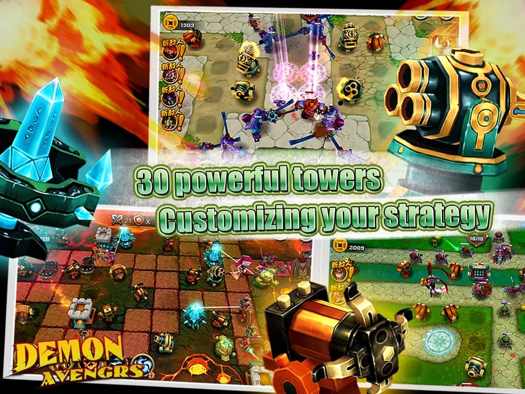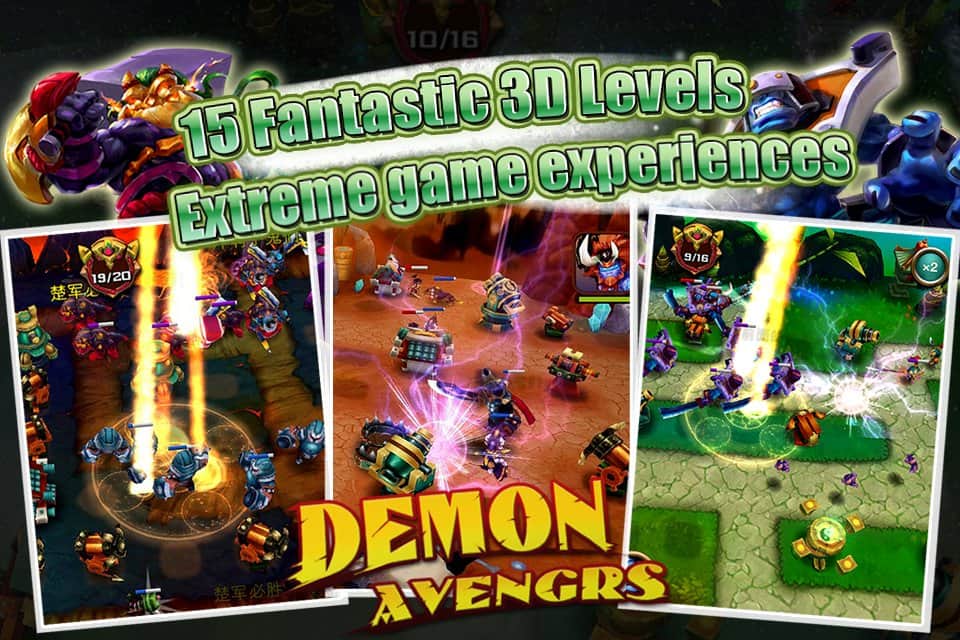 Demon Avengers TD - Очень красивая стратегия на андроид в жанре tower defense. В древности восток Земли был разделен на две части. В этих двух частях правило два короля Тень и Гром. Но в последние годы их отношения обострились Тень пригласил его на ужин в честь перемирия, а коварный Гром убил царя. Теперь вам нужно собрать все силы, чтобы обить наступающие войска Грома. Игра имеет очень качественную графику, и красивые эффекты.