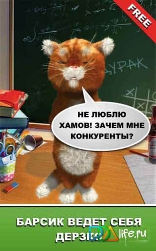 Дерзкий Барсик: новогодний кот - Приютите у себя в телефоне веселого и очень дерзкого говорящего кота. Барсик – не просто говорящий кот, который будет повторять все сказанное вами. Дерзкий кот может вполне отказаться произносить всякую ерунду или даже послать вас куда подальше. Дерзкий кот Барсик знает огромное количество разных шуток и приколов, поэтому вы с ним не заскучаете и точно будете в центре внимания в новогоднюю ночь.