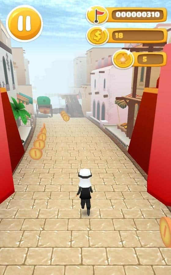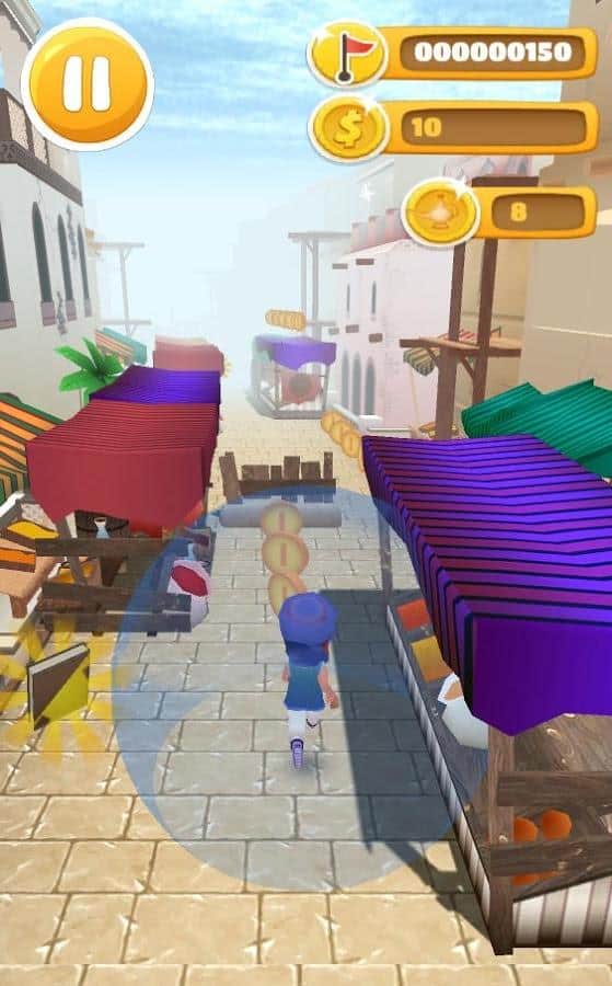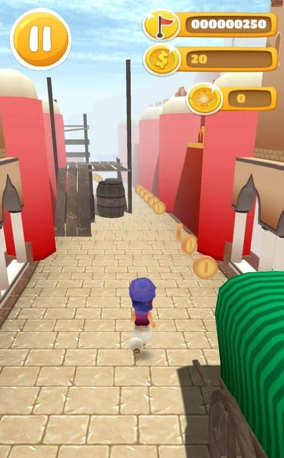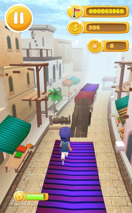 Desert Prince Runner – раннер на андроид, где вам предстоит перемещаться по огромному восточному городу. Бегайте, прыгайте и летайте на ковре самолете через небольшие домики и многочисленные препятствия. Окунитесь в неповторимую атмосферу востока и насладитесь живописными пейзажами. Ведите героя вперед, управляя им с помощью одного прикосновения пальца к экрану, и обходите на своем пути все преграды. В нужный момент нажимайте на экран, чтобы ваш герой совершил прыжок или обошел препятствие. По пути не забывайте собирать монетки и бонусы в виде магнита и ковра самолета. На заработанные деньги приобретайте для своего героя новые яркие костюмы и аксессуары.