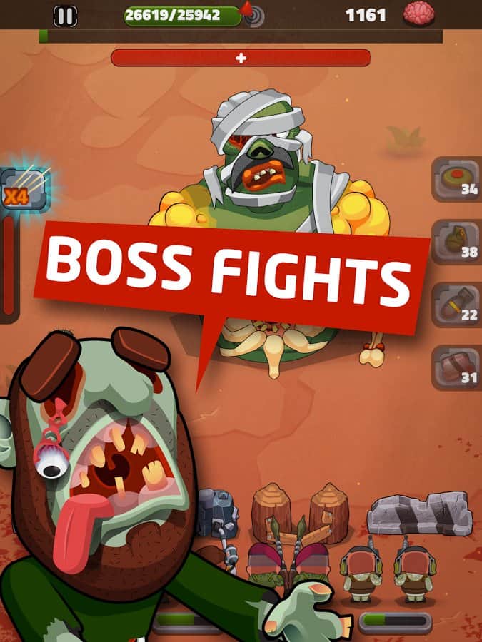 Desert Zombies – игра на андроид, которая перенесет вас в мир после зомби апокалипсиса. В этой игре вашей главной задачей будет охранять научную лабораторию от наступления бесконечного количества зомби. Защитите лабораторию от разрушения и уничтожьте всех зомби, применяя для этих целей любые методы и различное оружие. Ваши солдаты будут стоять за ограждением, которое будет защищать их от зомби и вести огонь по врагу. Расставляйте на пути зомби мины, бросайте в них гранаты и уничтожайте прицельным огнем. Пройдите более 200 уровней и вступите в бой с сильными боссами, выполняя все поставленные миссии.
