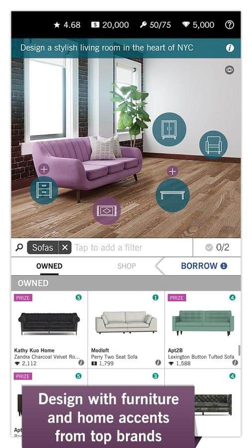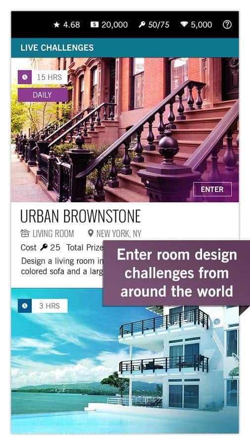 Design Home - довольно необычный проект, для мобильных платформ, в котором вы сможете реализовать все свои творческие способности в области дизайна интерьеров. Данная игра придется по вкусу не только поклонникам дизайнерских решений, но так же и просто любителям порастовлять мебель или даже фанатам жанра строительных симуляторов. При этом к неоспоримым плюсам Design Home можно отнести реалистичные высокодетализированнные модели выполненные в отличном графическом решении, простое и понятное управление, изменение положения камеры, огромный выбор не только мебели, предметов декора, но и отделки, а так же использование реально существующих брендов таких как Serena & Lily, Kathy Kuo Home, Noir and Loloi, все это без сомнения позволит вам почувствовать себя настоящим дизайнером.