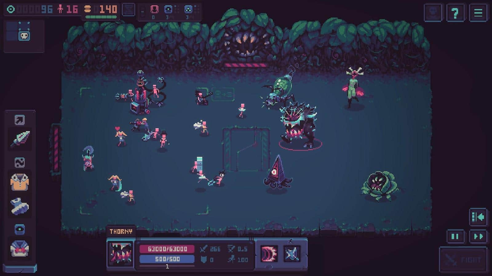 По сути рогалик батл-симулятор, в котором надо заниматься менеджментом. Как распределить ресы, чё взять, сколько и какие юниты нужны, как их прокачать, какой билд сделать. В боях игрок лишь наблюдатель, и из-за этого игра быстро приедается. Хоть тут и есть ускорение 2х, но необходимо ещё больше, ибо даже с 2х всё тянется долго, т.к. комнат много, врагов дофига, и плюсом они жирные. Механики, конечно, классные, и подумать головой интересно, но наблюдать за боями, которые видел уже сотни раз попросту неинтересно. Сильное ускорение могло бы помочь спасти ситуацию, но увы