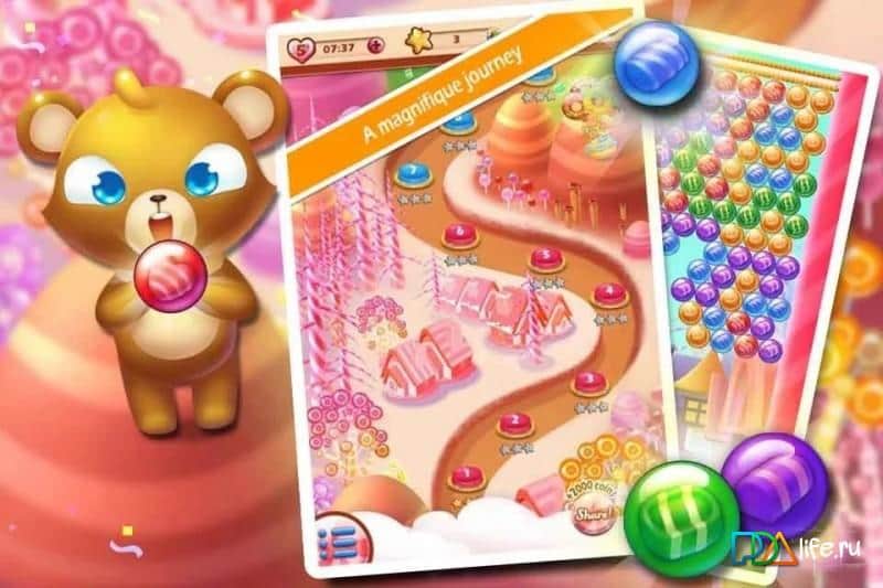 Dessert Dash - Побывайте в Королевств Десерта! Вы будете путешествовать с медведем по Королевству, помогая феям. Покажите свою меткость и расстреливайте ряды цветных шариков шариками одного цвета, т.е. зеленым шариком зеленые шарики, красным - красные, жёлтым - желтые и т.д. Вас ждут приключения с большим количеством различных сценических режимов, боссами и врагами, которые хотят вам навредить. Пройдите более 80 этапов игры, чтобы помочь феям. Эта яркая, динамичная, развлекательная игра будет интересна всем! Очисти все поля уровней и докажи свою меткость! Не пропусти эту веселую игру.