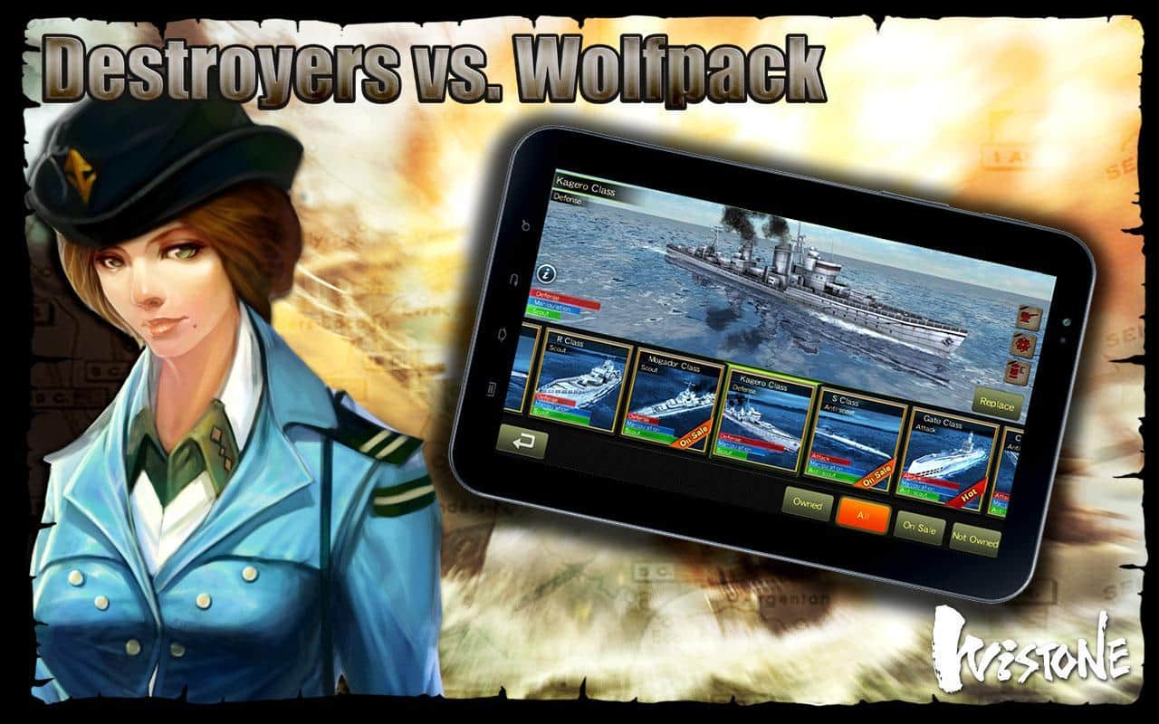 Destroyers vs. Wolfpack - это морская стратегия о крупномасштабных военных баталиях на воде! Вы выступаете в роли главнокомандующего морским флотом - создайте свою боевую команду из подводных лодок, линкоров, авианосцев и пр.военной техники. Создав флотилию вы сможете выиграть любое сражение и не опасаться любого врага. А выработав свою уникальную стратегию ведения боя, сможете сполна насладиться зрелищностью событий!