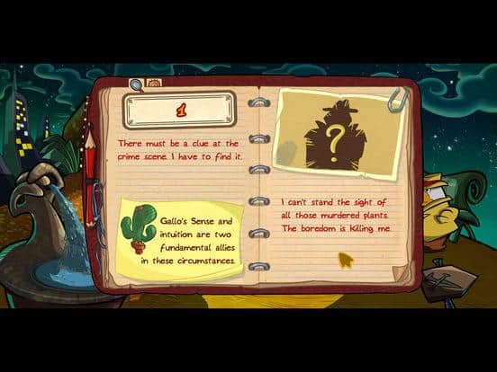 Detective Gallo – приключенческая игра для IOS, где вы будете помогать детективу расследовать сложное дело. В этой игре вы будете помогать ворчливому детективу-петуху Галло, расследовать масштабное убийство растений. Играйте роль детектива и подключайте свою сообразительность и логику для того чтобы расследовать дело и разгадать все тайны и загадки. Игра порадует игроков отличной анимированной графикой нарисованной вручную и часовым саундтреком в стиле джаз. Играйте в игру и повстречайте на своем пути многочисленных персонажей, которых вам предстоит допросить.