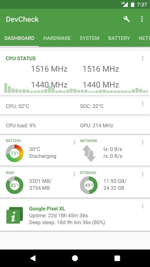 DevCheck System Info - Соберите полную информацию про работу своего устройства. Данное приложение уникально, а так же не требует root прав для использования. Вы получите полный доступ к информации о системах вашего смартфона. Но это не просто сбор данных, вы сможете мониторить свою систему в режиме реального времени. Узнать много нового о ней, и даже выявить возможные причины помех в работе смартфона.