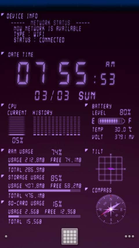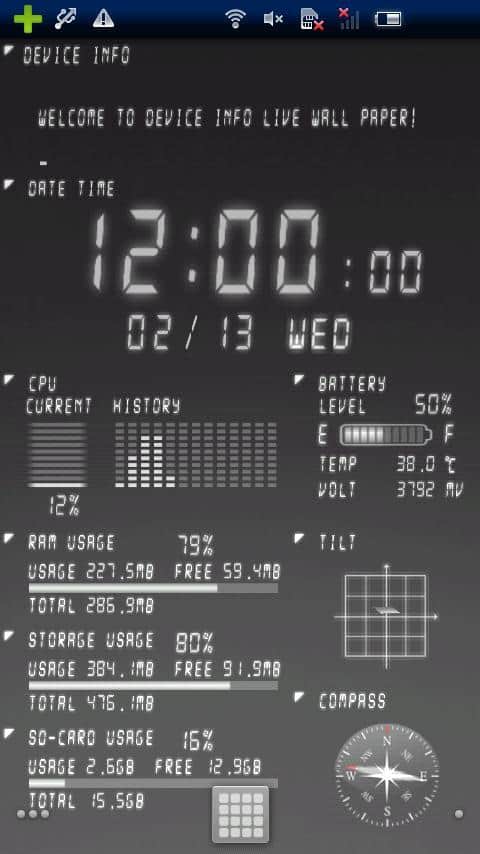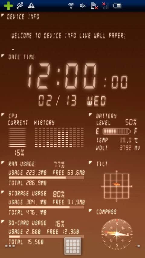Device Info Live WallPaper – весьма полезные живые обои для вашего андроид устройства. Скачав и установив обои на экран своего смартфона/планшета, вам будет предоставлена полная информация об: