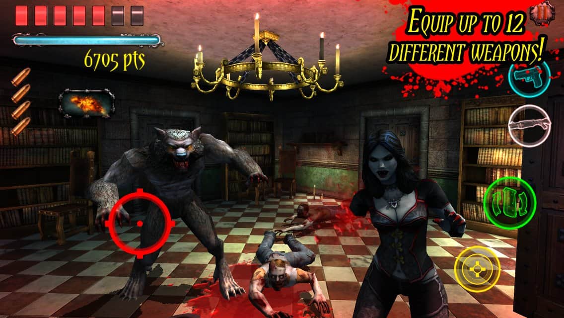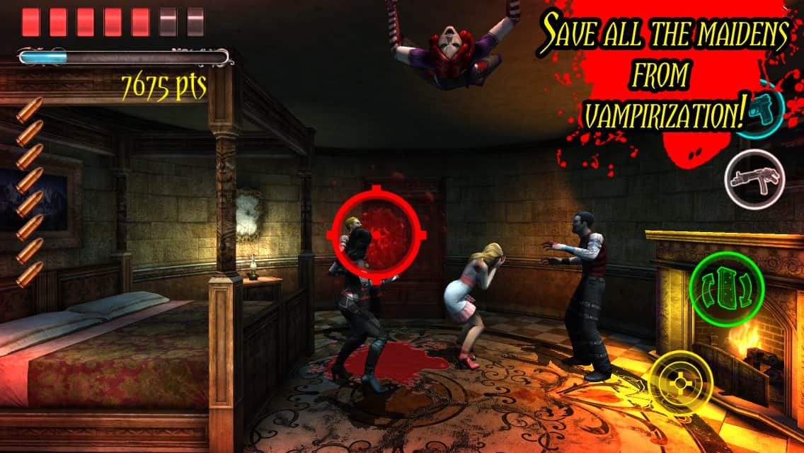 Devil Slayer Gunman – игра на андроид, где вы будете выступать в роли охотника на вампиров и оборотней. В этой игре вам выпала непростая задача по уничтожению всех монстров и вампиров похитивших девушек, которых вам предстоит спасать. Пробирайтесь сквозь темный лес и старинный замок и уничтожайте всю нечисть попадающуюся вам на пути. Ведите непрерывный огонь из пистолетов, дробовиков и пулеметов по вампирам и оборотням и старайтесь попасть в голову или в самые уязвимые места врага. Не подпускайте к себе врагов и старайтесь держаться от них на далеком расстоянии. По ходу игры не забывайте улучшать свое оружие и собирать нужные вам предметы.