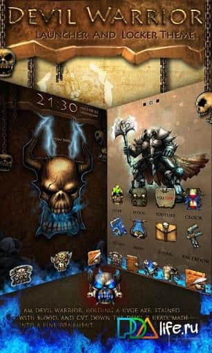 Devil Warrior GO Locker Theme – этот шикарный блокировщик экрана на андроид для GO Launcher EX от разработчика Freedom Design, выполнен в стиле игры очень напоминающей World of Warcraft. Весьма качественное и красивое оформление. Все иконки стилизованы, чем порадуют любителей подобных игр. Приятного пользования и отличного настроения!