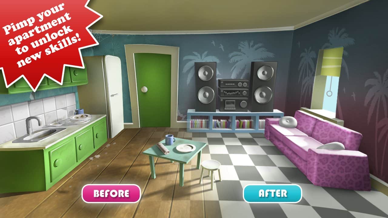 После того как мы закончили с вами дело, мы идём в квартиру и покупаем определённую мебель. У нас есть 3 категории, в которой мы можем пойти. У каждой категории есть свои скилы, которые открываются при покупке вещей.