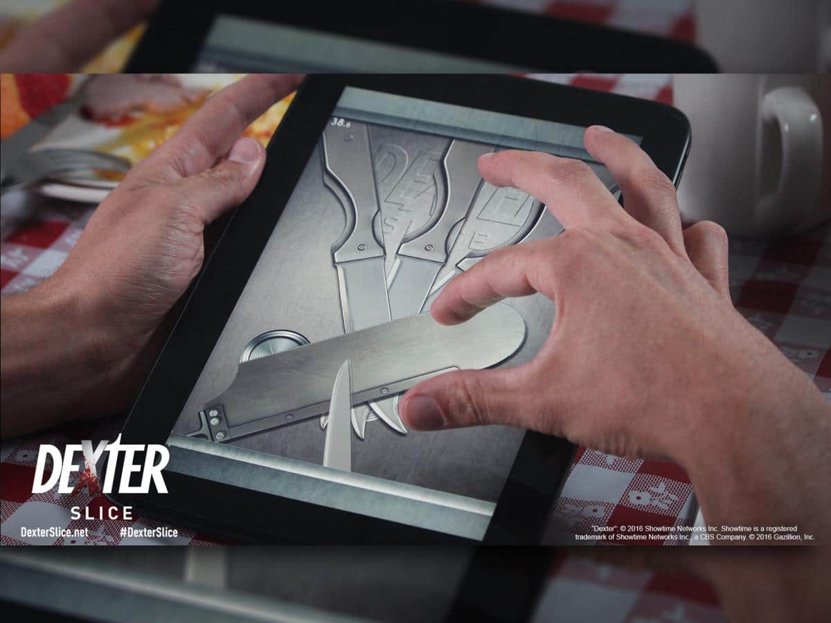 Dexter Slice – увлекательная игра для IOS, которую обязательно оценят фанаты телесериала Декстер. Эта игра была выпущена к 10-ю сериала и порадует огромную группу фанатов и любителей этого детектива. В этой игре вашей главной задачей будет нажимать на специальные кнопки при этом остерегаться огромных лезвий острых ножей и тесаков. Покажите в этой игре всю свою ловкость и отличную реакцию, не давая ножам порезать ваши пальцы. Осторожно отодвигайте ножи, загораживающие кнопки и проходите уровни. С каждым новым уровнем сложность игры будет увеличиваться и вам придется потрудиться, чтобы дойти до финала. Озвучивать эту игру будет отец Декстера – Гарри Морган.
