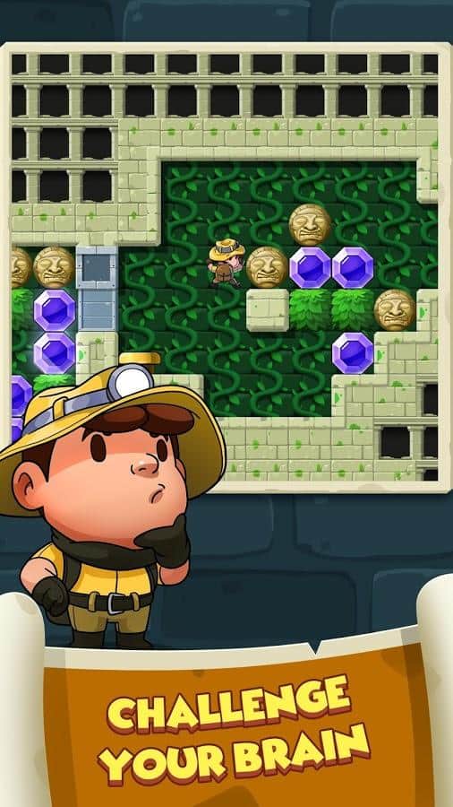 Diamond Quest: Don't Rush! – красочный платформер на андроид, где вы будете управлять бесстрашным исследователем. В этой игре вы проникните в храм Ангкор-Ват, который находиться в джунглях, исследуйте темницы баварского замка и посетите ледяные тибетские пещеры. Вашей главной задачей в этой игре будет собрать все драгоценные камни чтобы продолжить свой путь дальше. Прорезайте листья, распутайте паутину и найдите все драгоценные камни, расположенные на уровне. Вас по всюду будет подстерегать опасность и множество врагов которых вы сможете уничтожать с помощью огромных валунов. Сразитесь с сильными боссами, поджидающими вас в конце каждого уровня и решайте сотни головоломок.